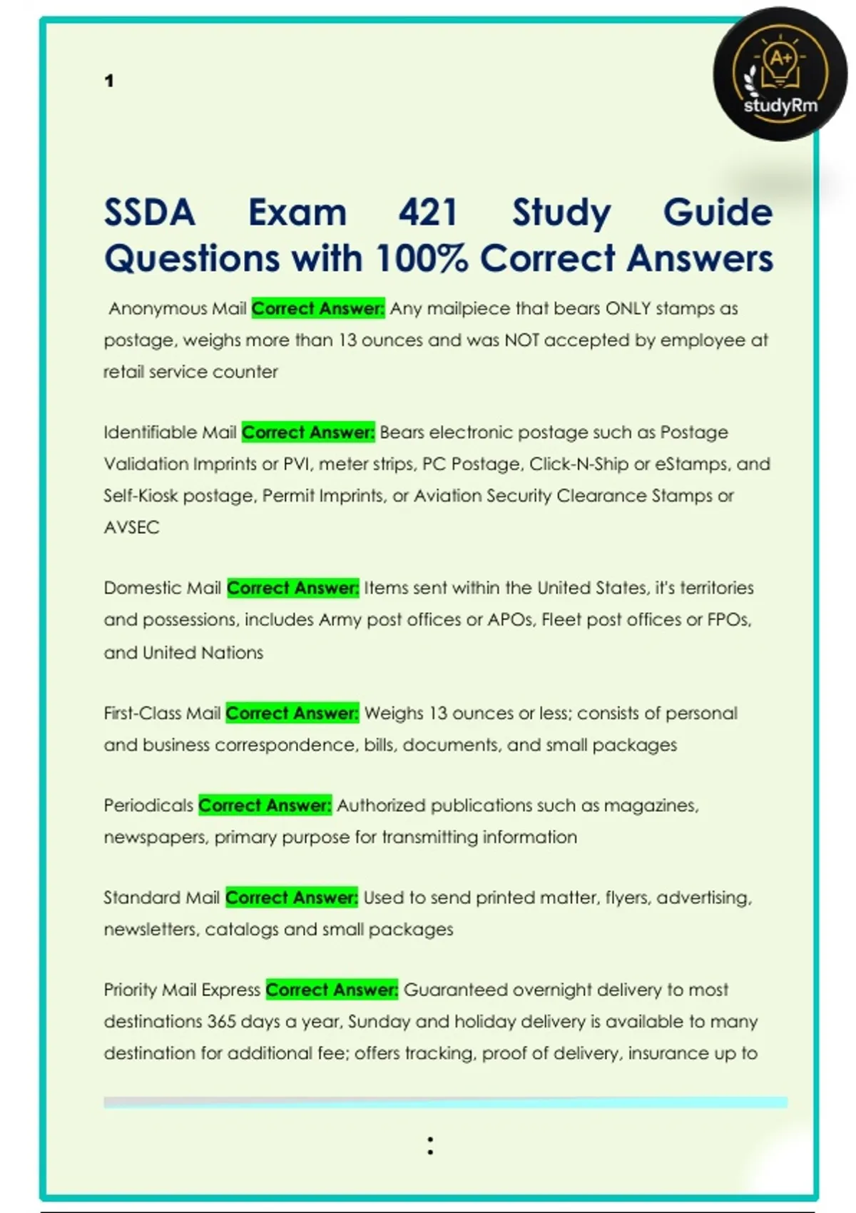 SSDA Exam 421 Study Guide Questions with 100% Correct Answers
