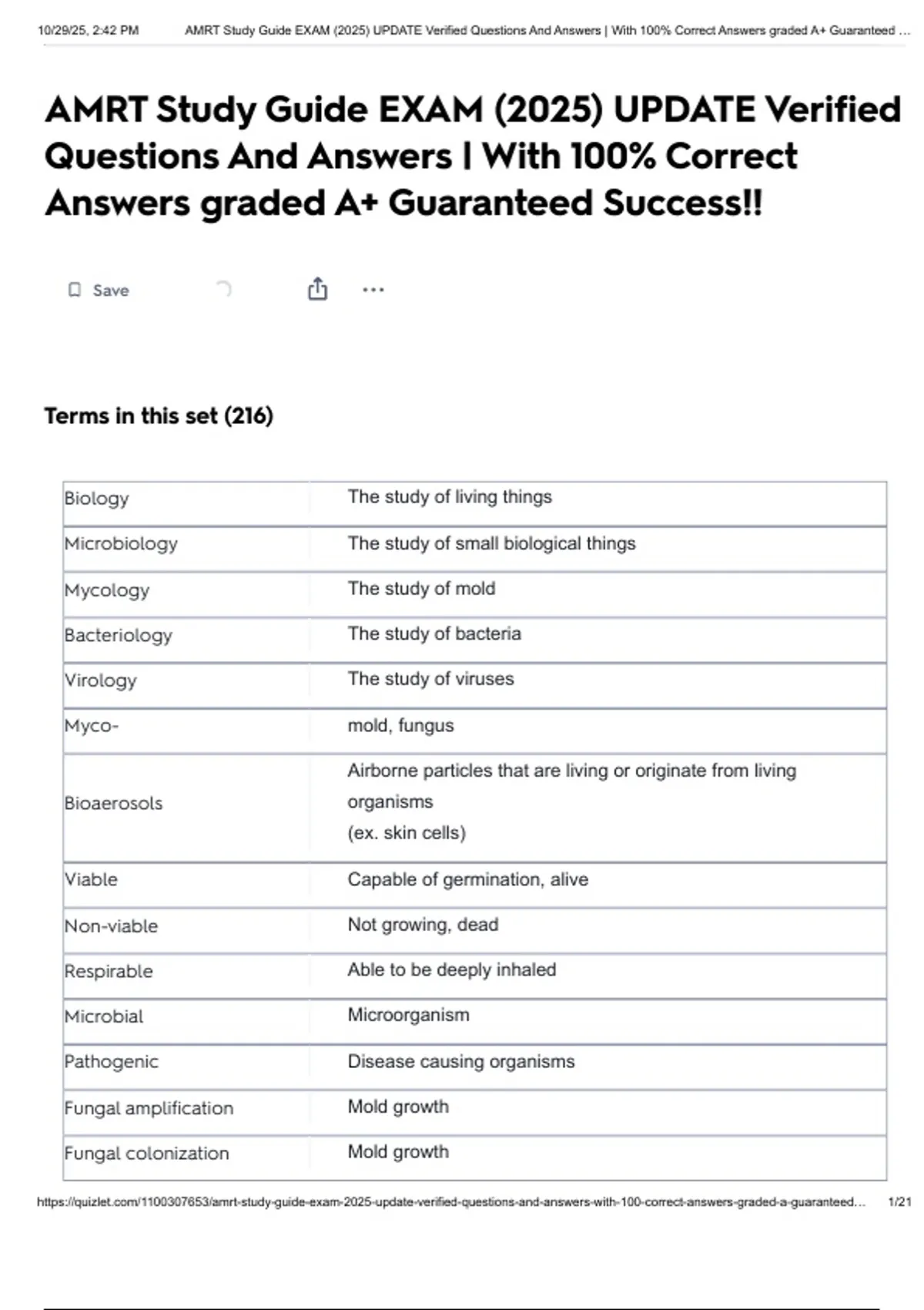 , 10/29/25, 2:42 PM AMRT Study Guide EXAM (2025) UPDATE Verified Questions And Answers | With 100% Correct Answers graded A+ Guaranteed …