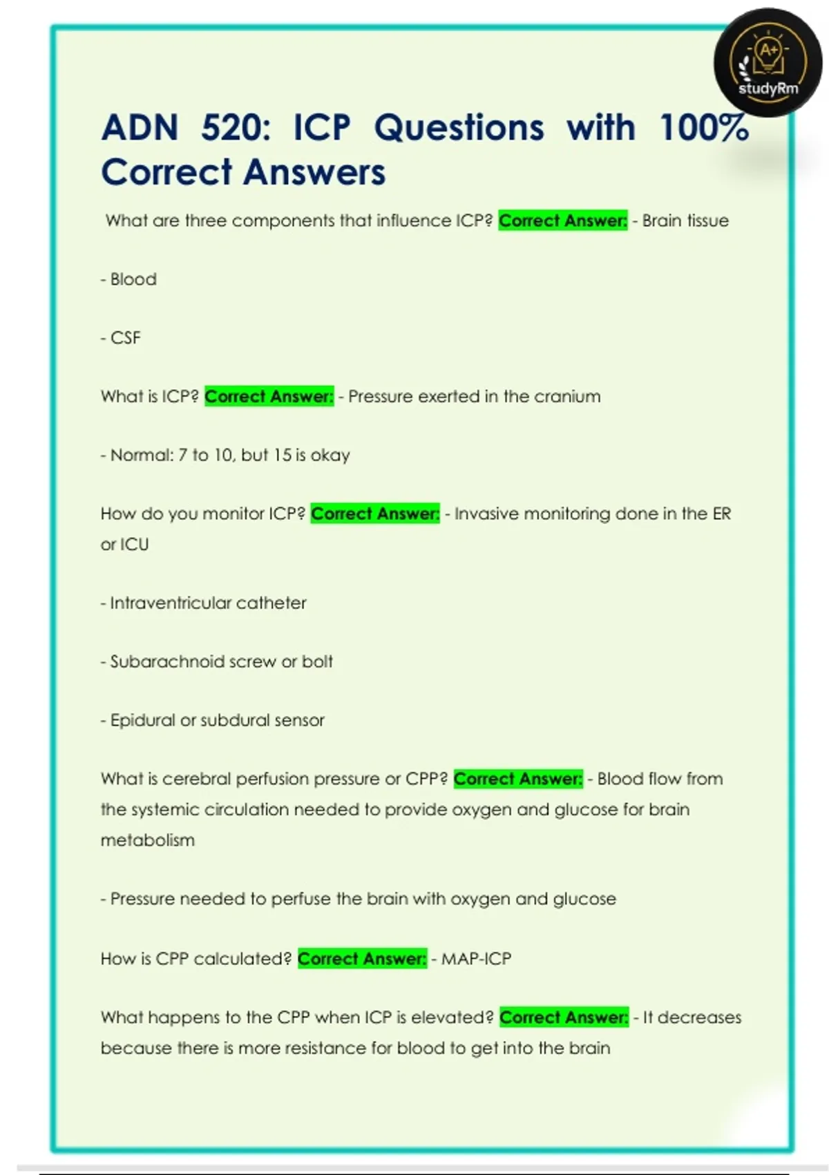 What is ICP? Correct Answer: - Pressure exerted in the cranium