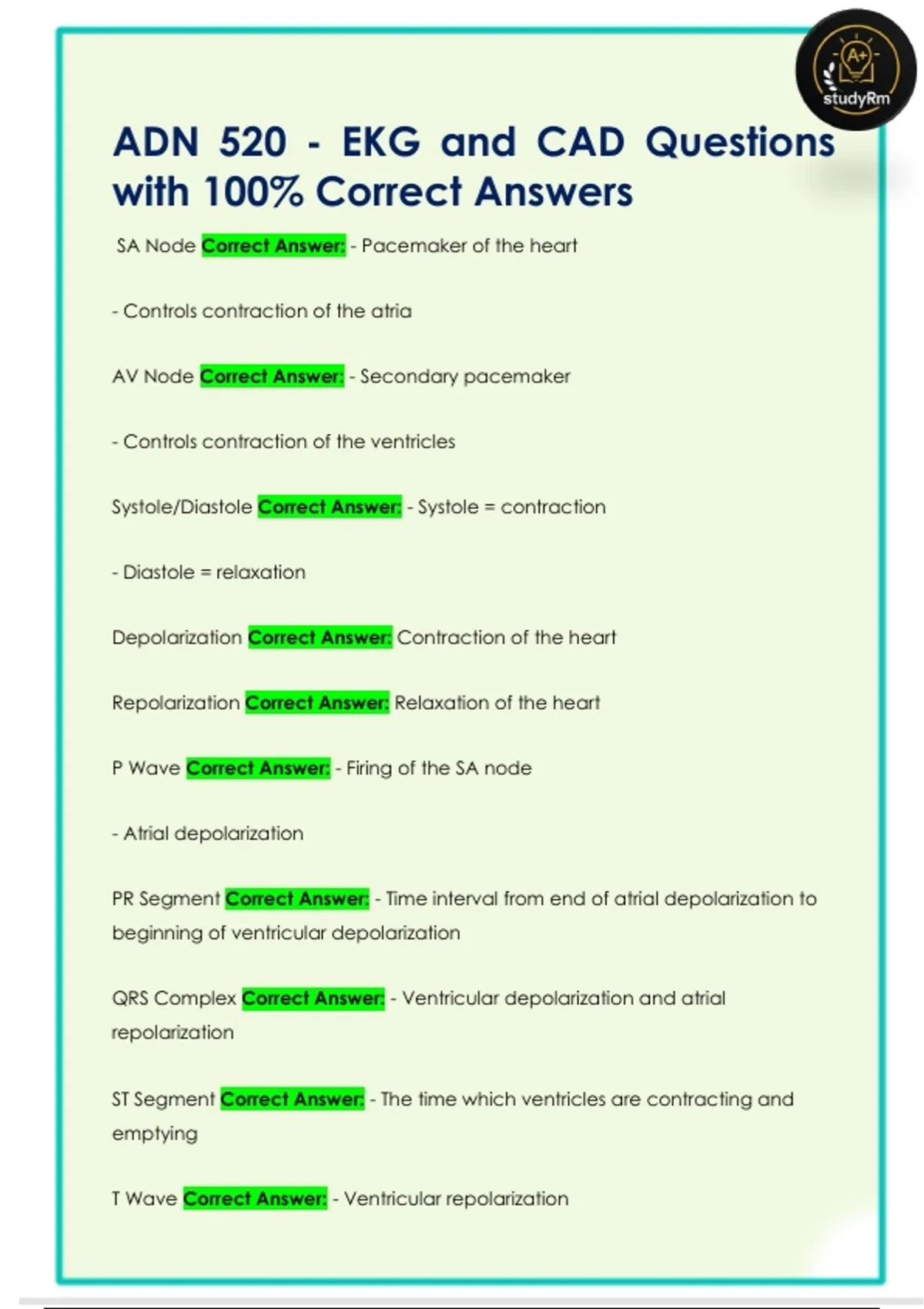 ADN 520 - EKG and CAD Questions