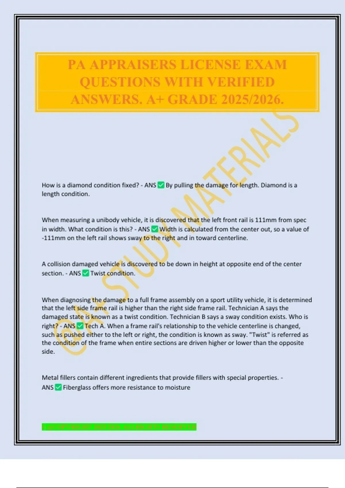 If there is possible frame damage, what should you write on the estimate? - ANS Setup and