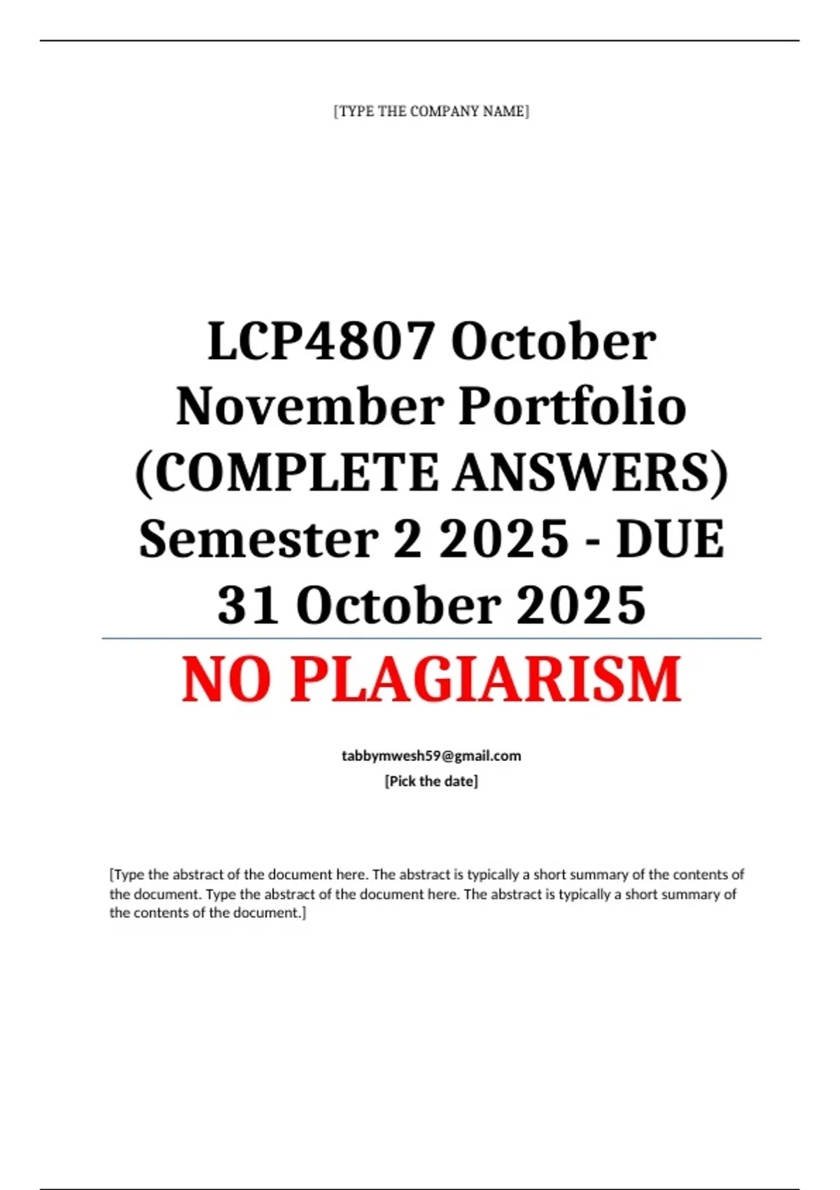 LCP4807 October November Portfolio (COMPLETE ANSWERS) Semester 2