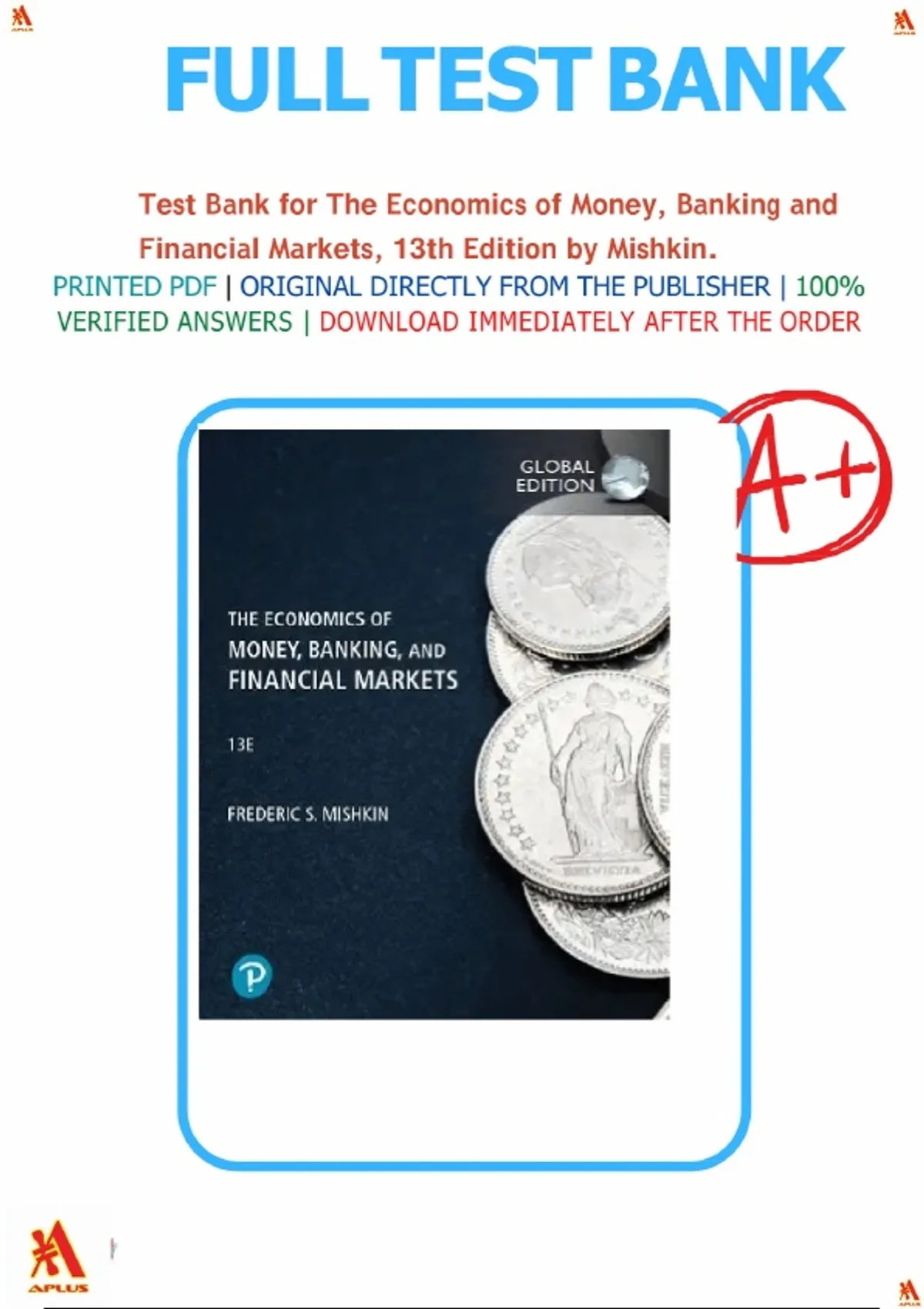 Solutions manual and Test bank for The Economics of money banking and financial markets 13th global edition by Frederic S. Mishkin |All Chapters 1-26 included, Graded A+