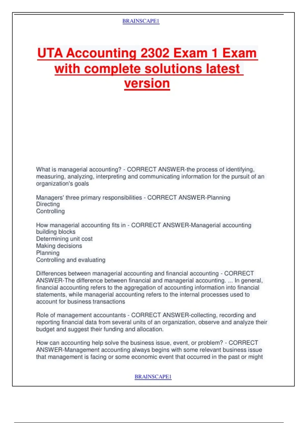 UTA Accounting 2302 Exam 1 Exam with complete solutions latest version.