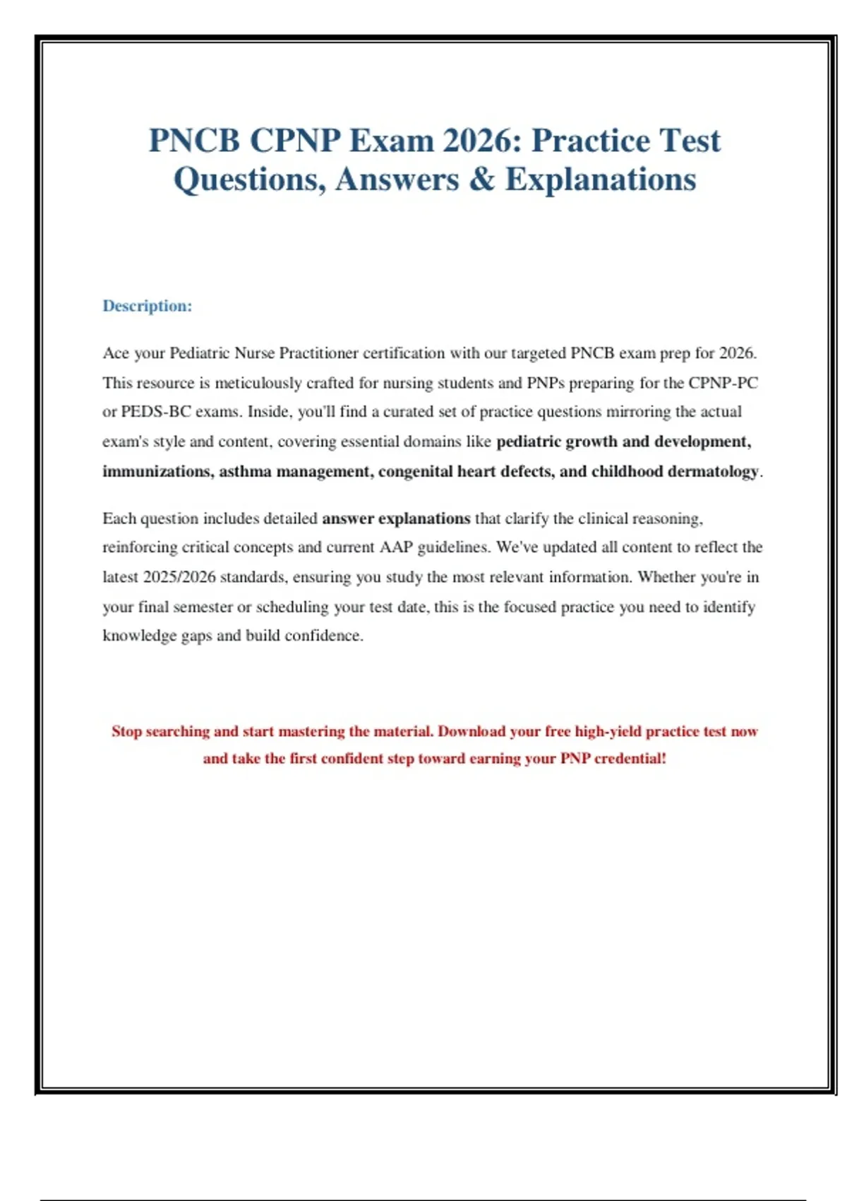 This resource is meticulously crafted for nursing students and PNPs preparing for the CPNP-PC