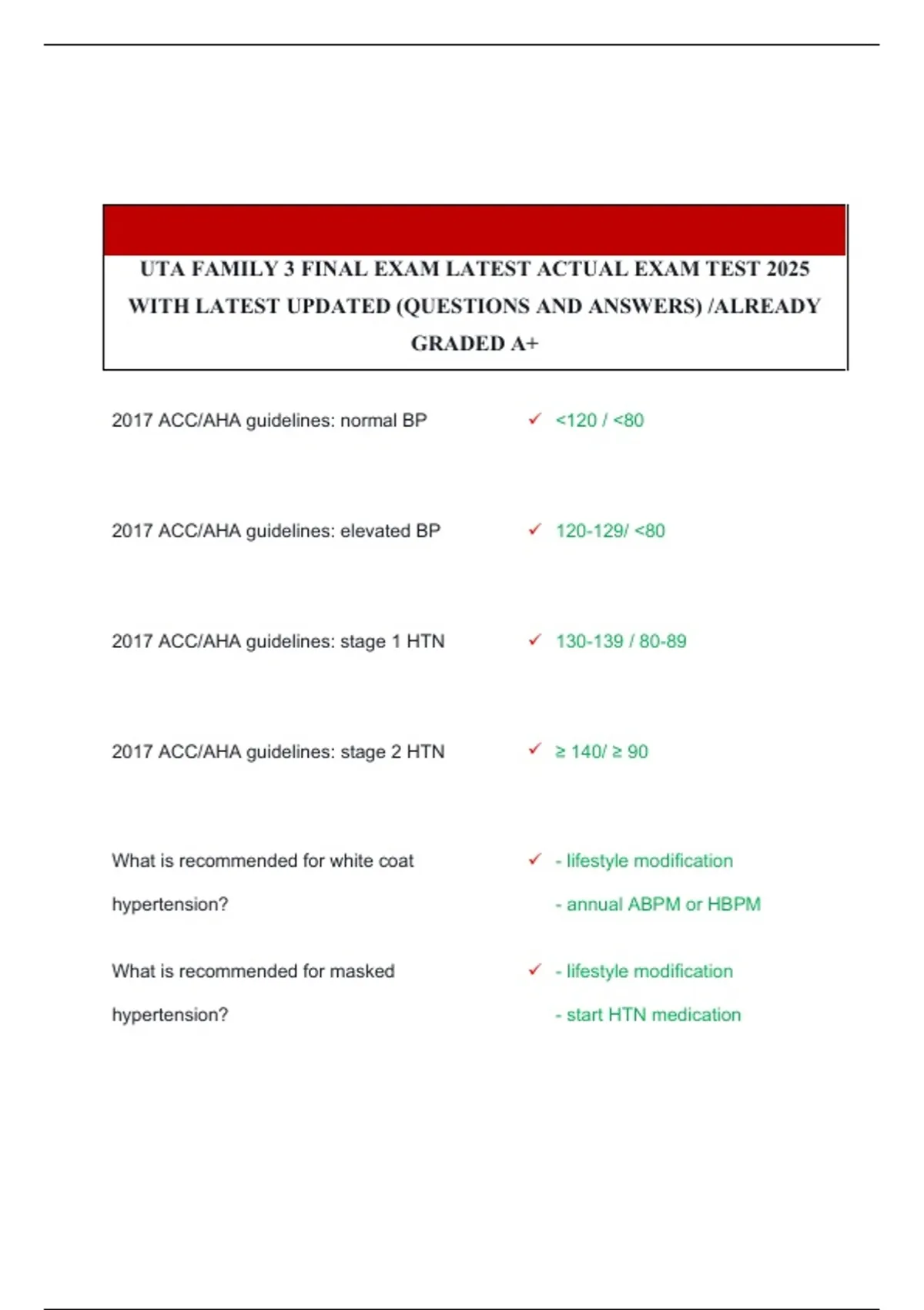 2017 ACC/AHA guidelines: elevated BP ✓ 120-129/ <80