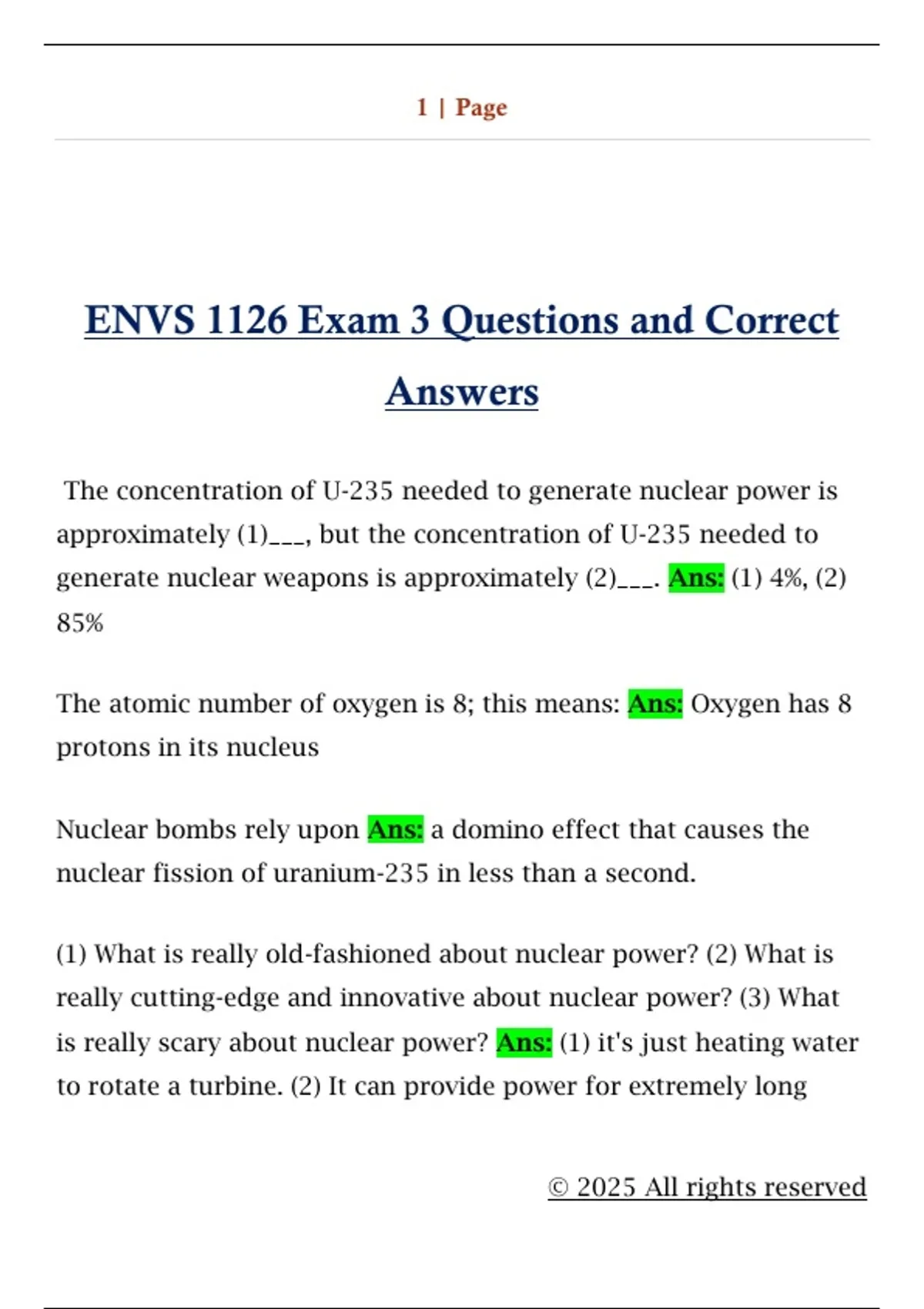 ENVS 1126 Exam 3 Questions and Correct