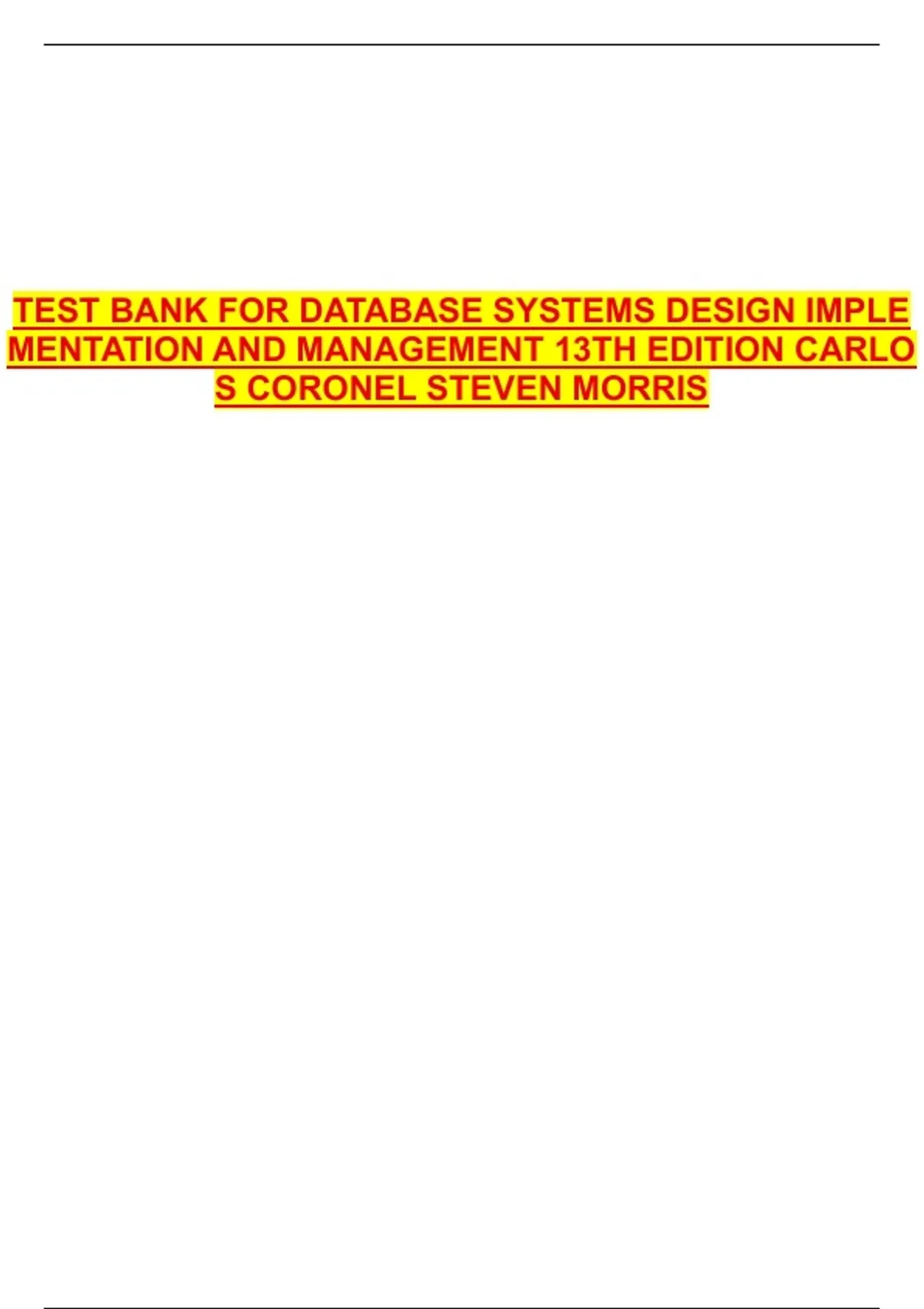 TEST BANK FOR DATABASE SYSTEMS DESIGN IMPLEMENTATION AND MANAGEMENT 13TH EDITION CARLOS CORONEL STEVEN MORRIS