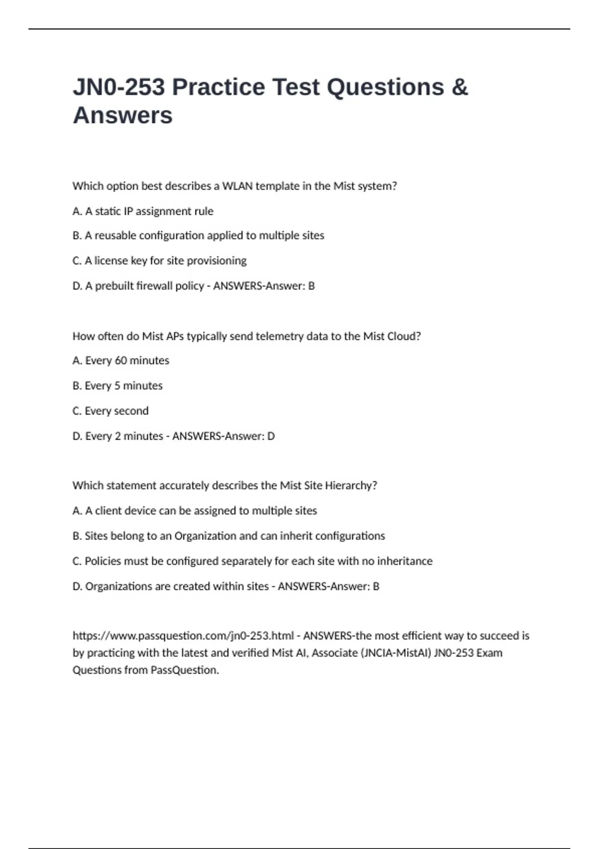 by practicing with the latest and verified Mist AI, Associate (JNCIA-MistAI) JN0-253 Exam
