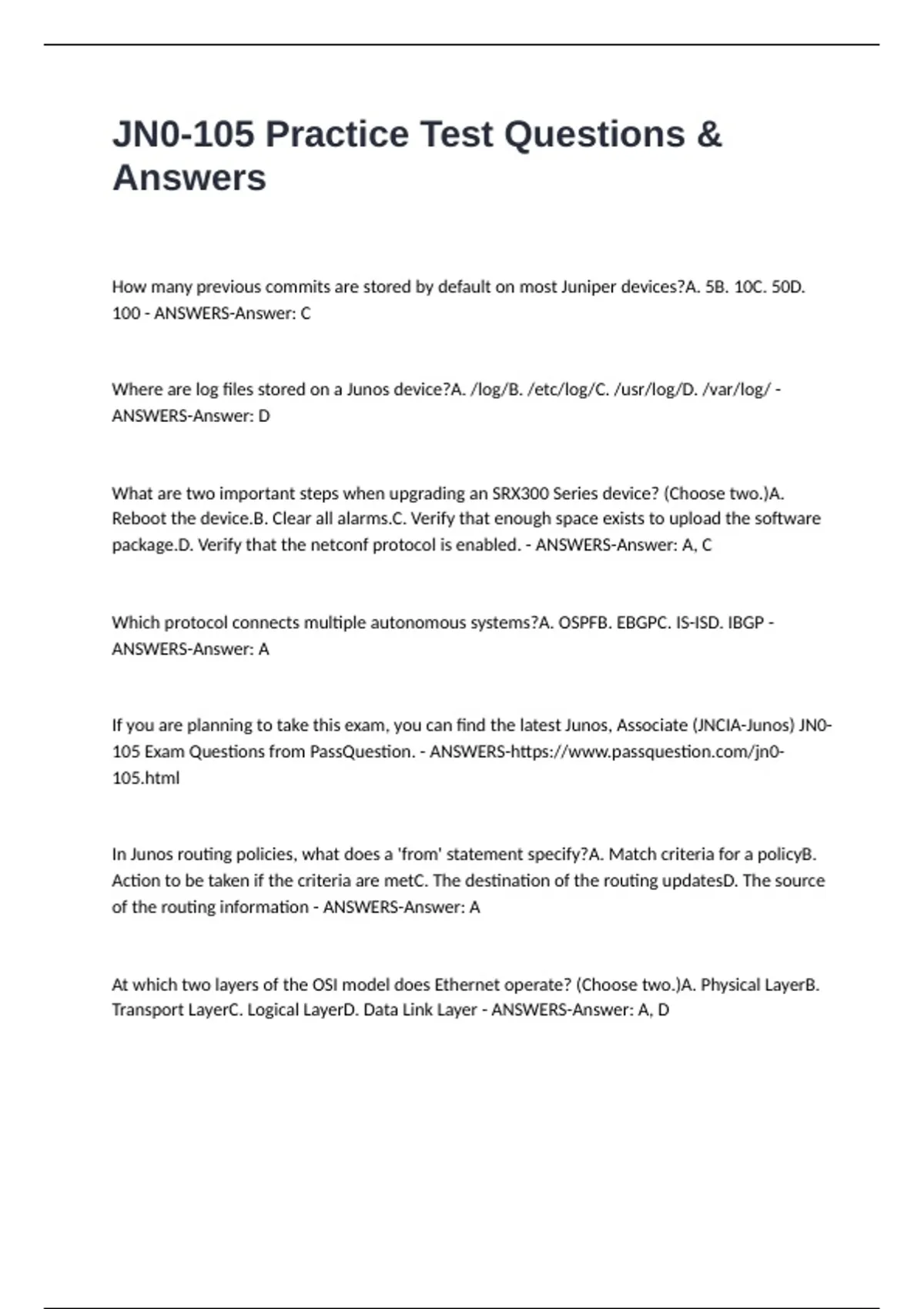 105 Exam Questions from PassQuestion. - ANSWERS-https://www.passquestion.com/jn0-