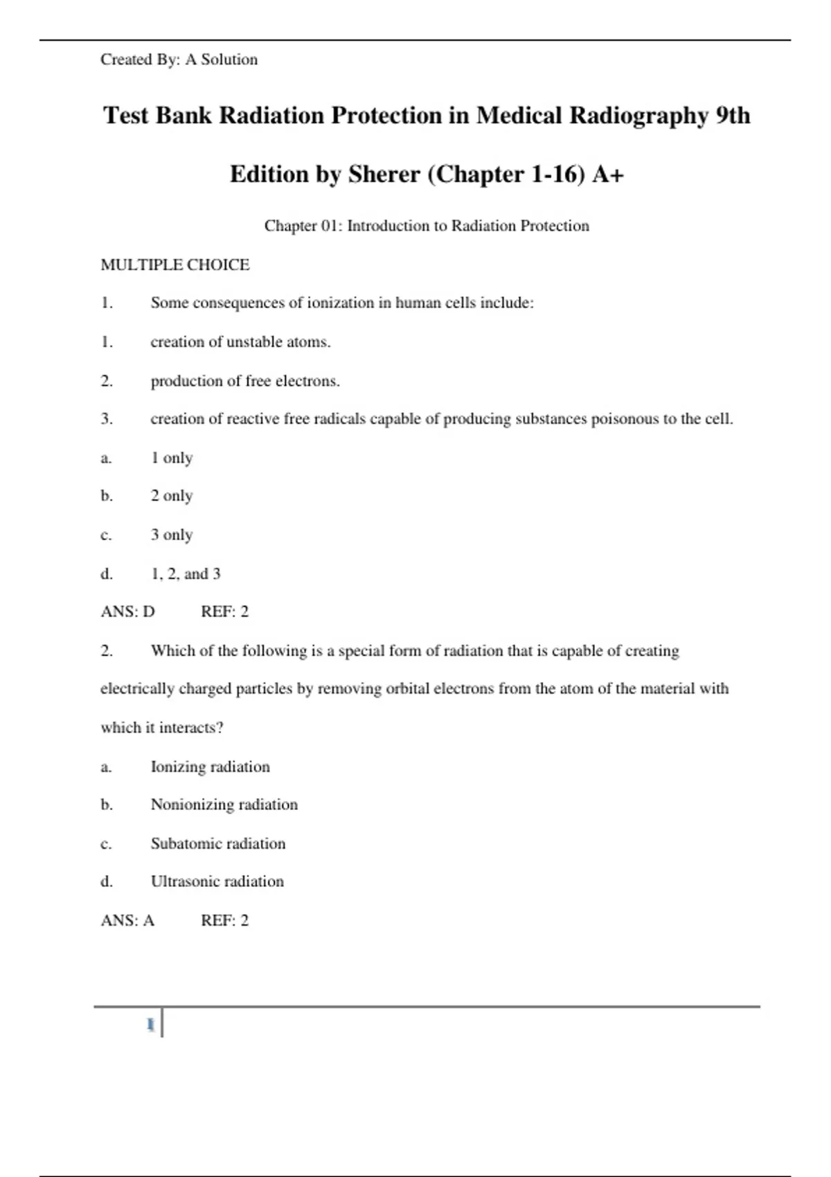 Test Bank Radiation Protection in Medical Radiography 9th