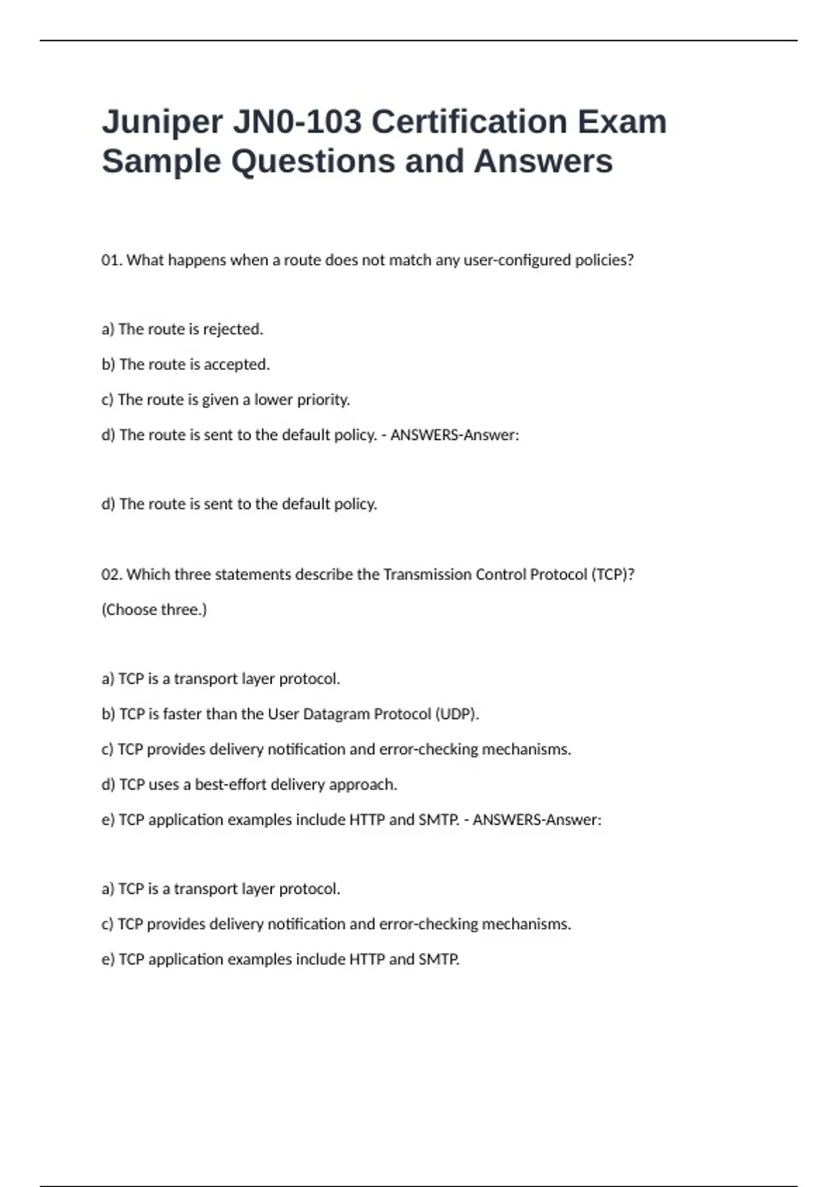 Juniper JN0-103 Certification Exam Sample Questions and Answers