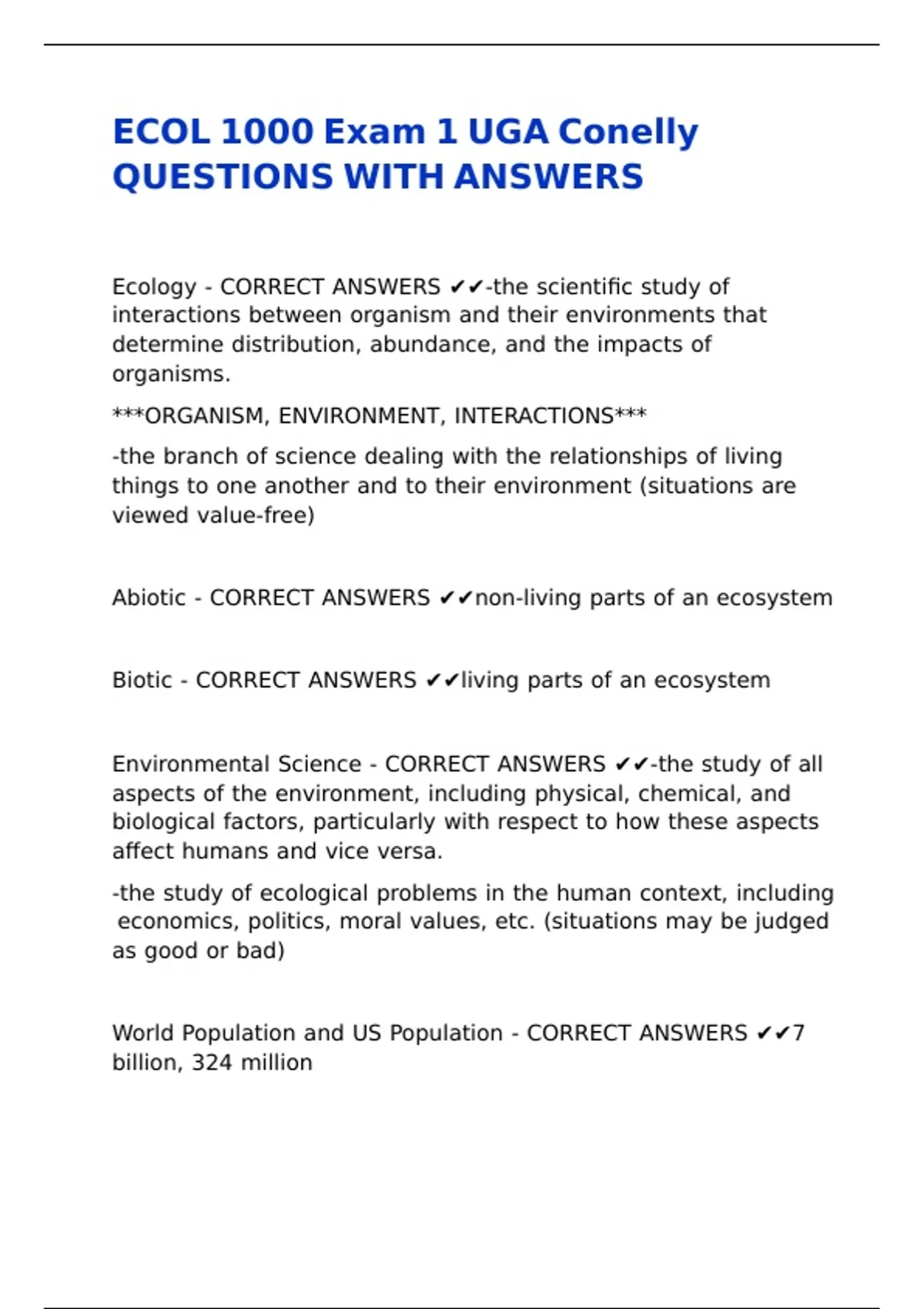 ECOL 1000 Exam 1 UGA Conelly QUESTIONS WITH ANSWERS.