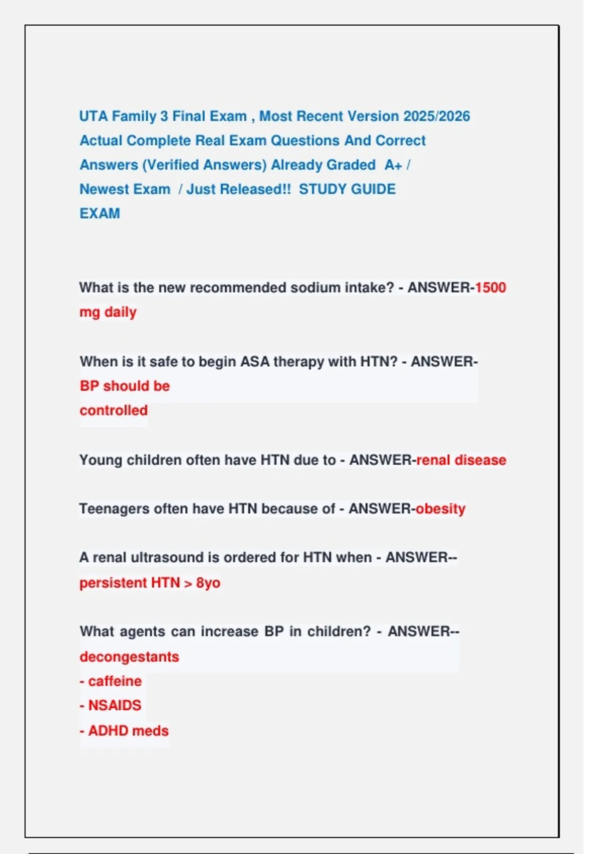 Newest Exam / Just Released!! STUDY GUIDE