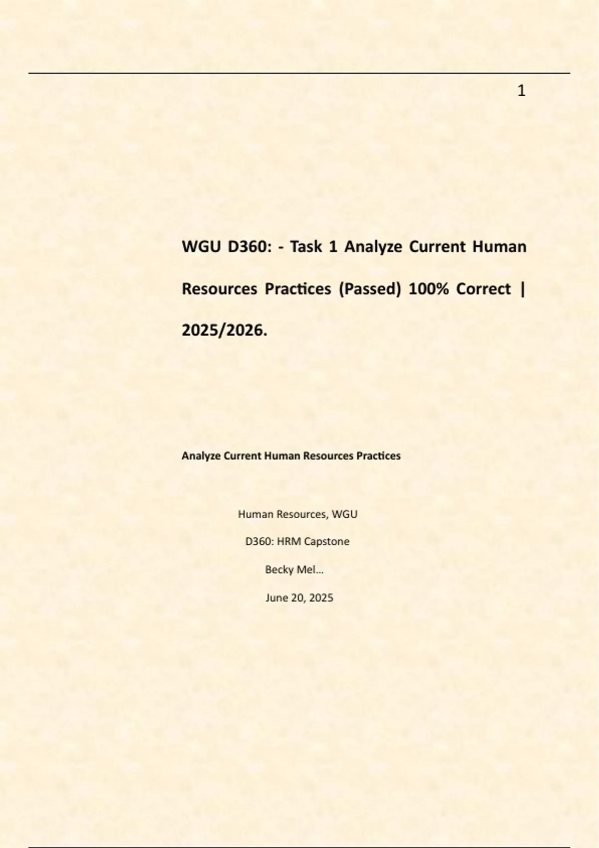 WGU D360: - Task 1 Analyze Current Human Resources Practices (Passed) 100% Correct | 2025/2026.