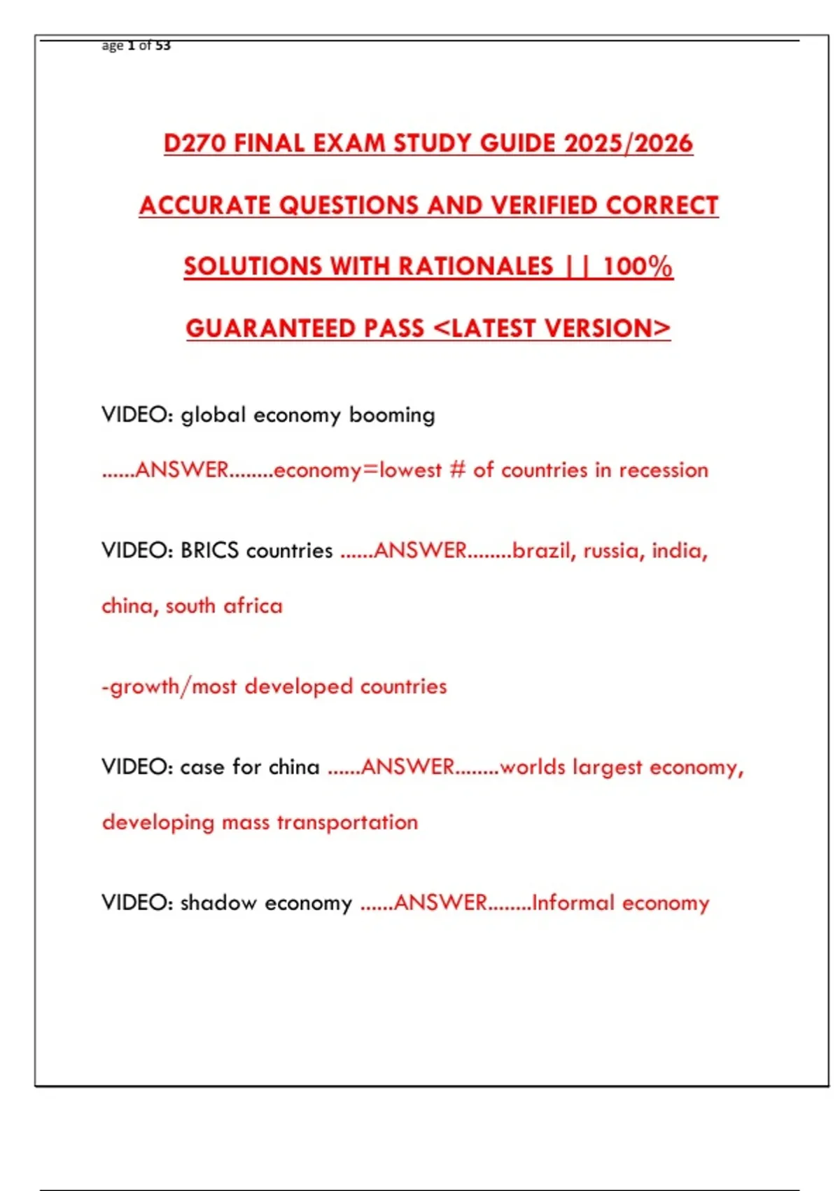Ace your D270 final exam with our comprehensive 2025 study guide. Includes key concept summaries, 200+ practice questions with answers, and test-taking strategies tailored to the course curriculum.