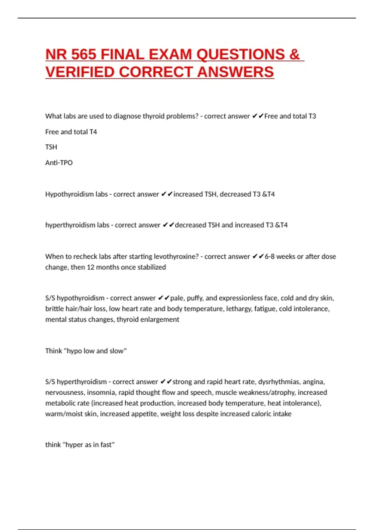 NR 565 FINAL EXAM QUESTIONS & VERIFIED CORRECT ANSWERS refers to study sets created by nursing students preparing for the NR565: Advanced Pharmacology for the Nurse Practitioner course, commonly offered in nurse practitioner programs such as those at Chamberlain University and other graduate nursing schools.