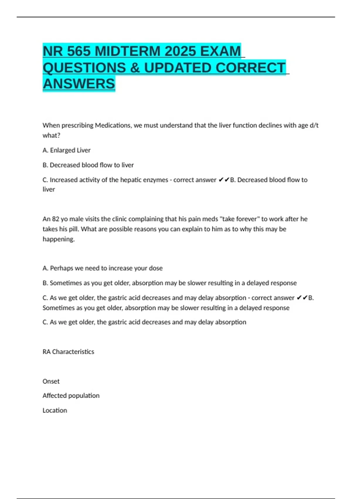 QUESTIONS & UPDATED CORRECT
