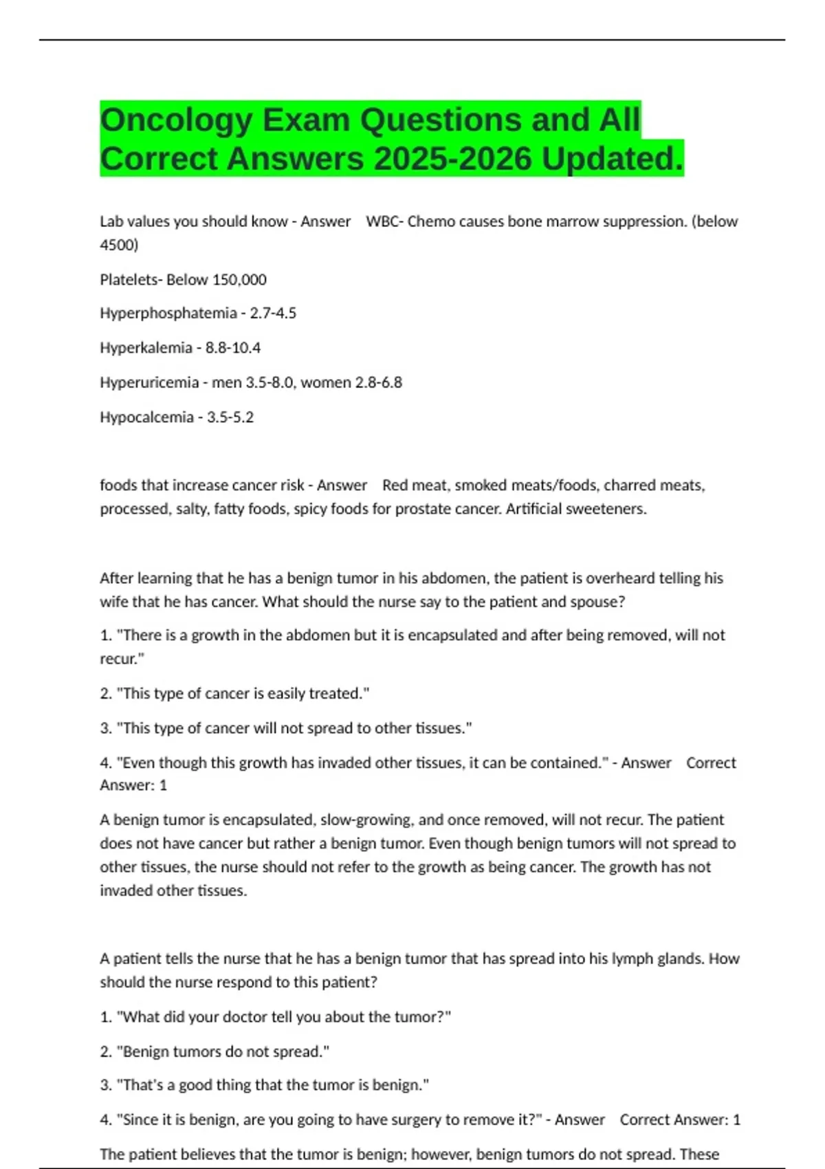 other tissues, the nurse should not refer to the growth as being cancer. The growth has not
