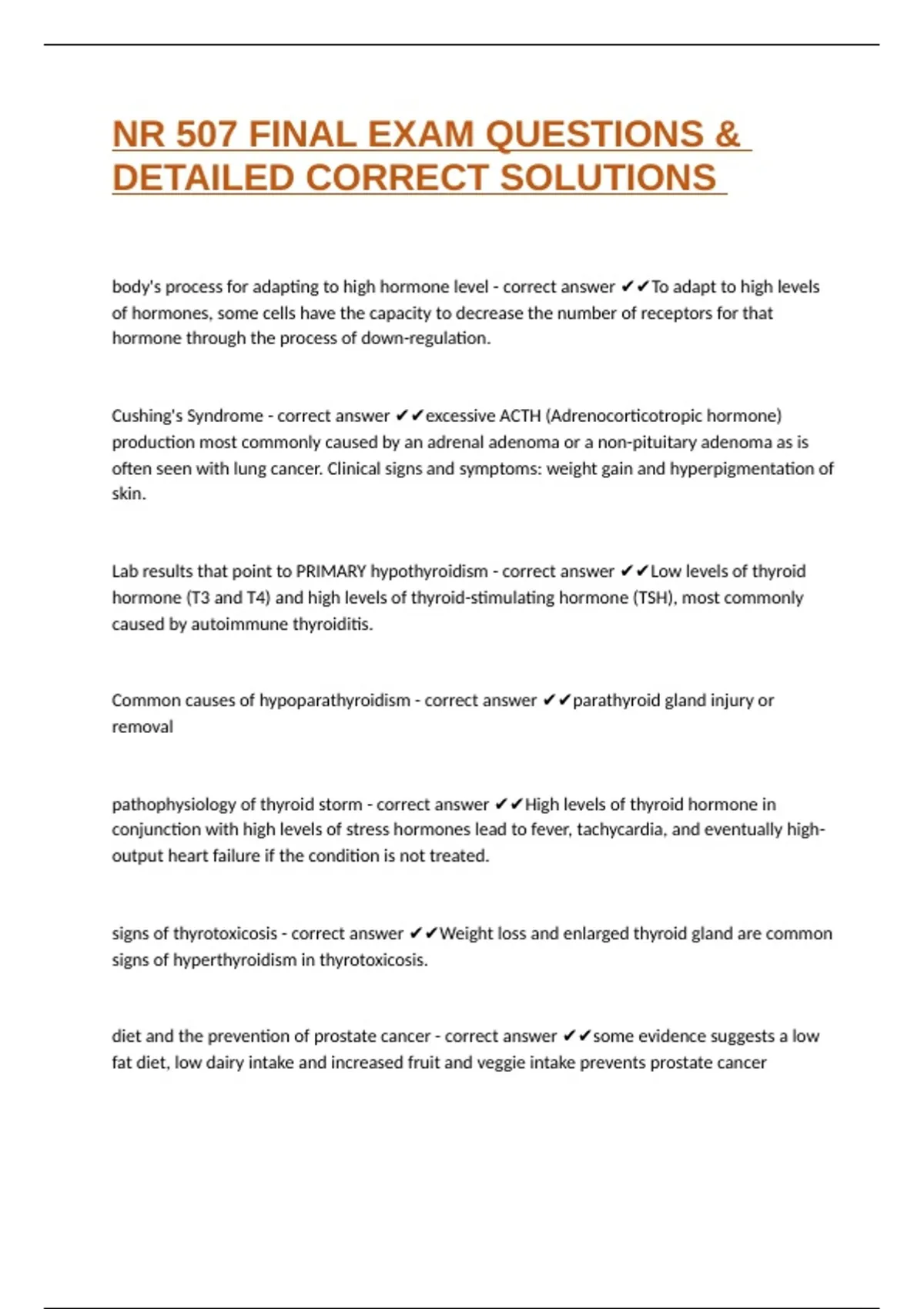 NR 507 FINAL EXAM QUESTIONS & DETAILED CORRECT SOLUTIONS serves as a study aid created by students. These sets generally do not contain actual exam questions; instead, they summarize the major topics covered in the course to help learners review.