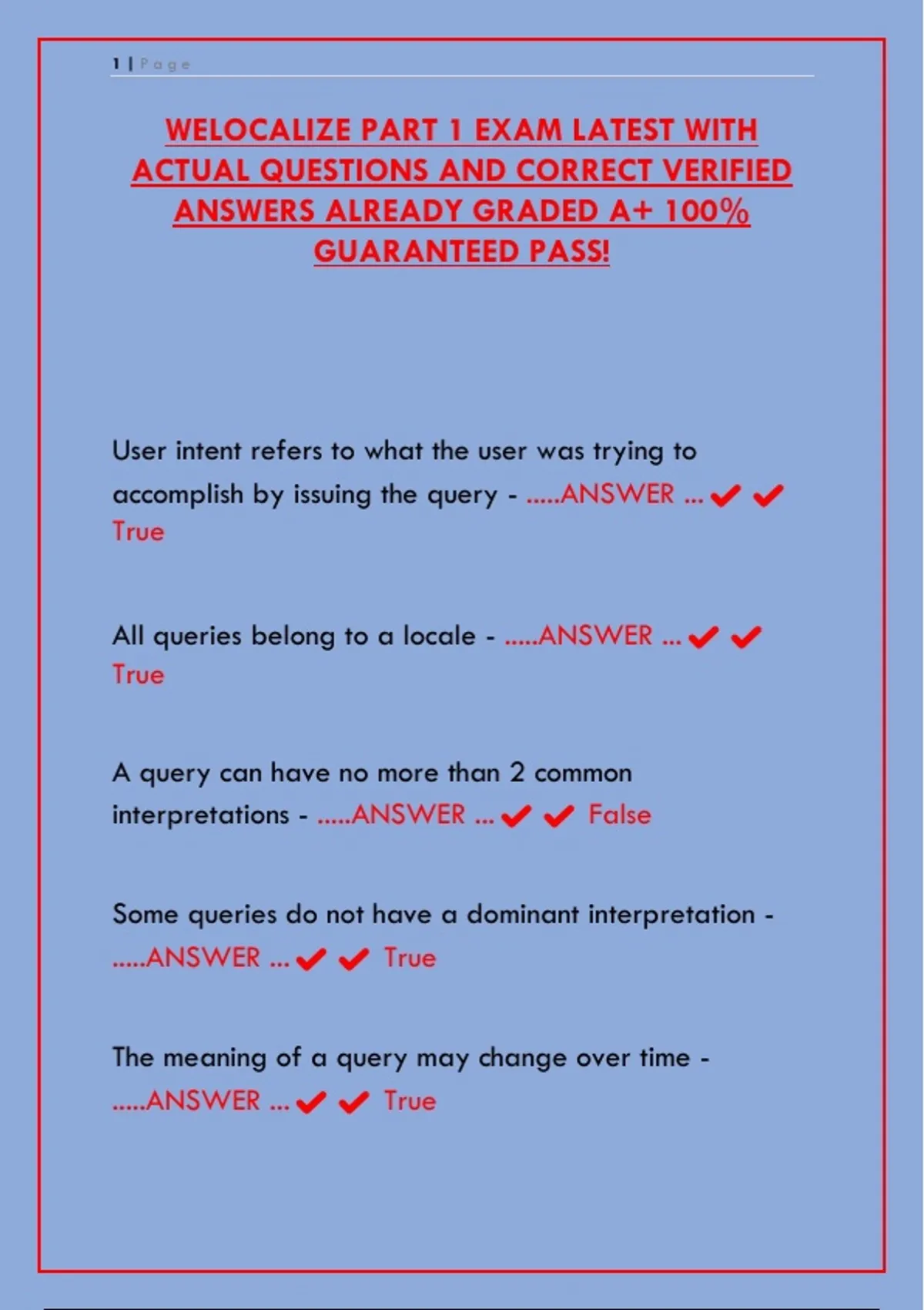 Pass the 2025 WeLocalize Part 1 certification exam on your first attempt. This guide provides the latest actual test questions with 100% correct, verified answers. Essential for search quality raters, ads evaluators, and localization specialists to achieve a top score and advance their careers.