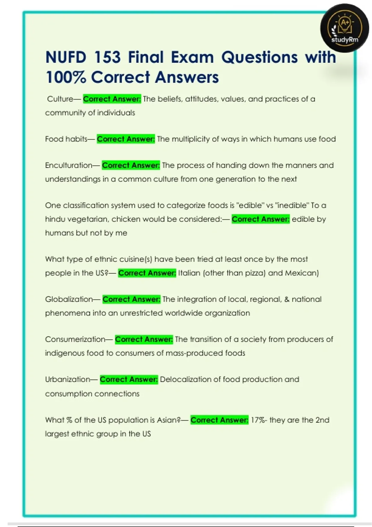 Culture— Correct Answer: The beliefs, attitudes, values, and practices of a