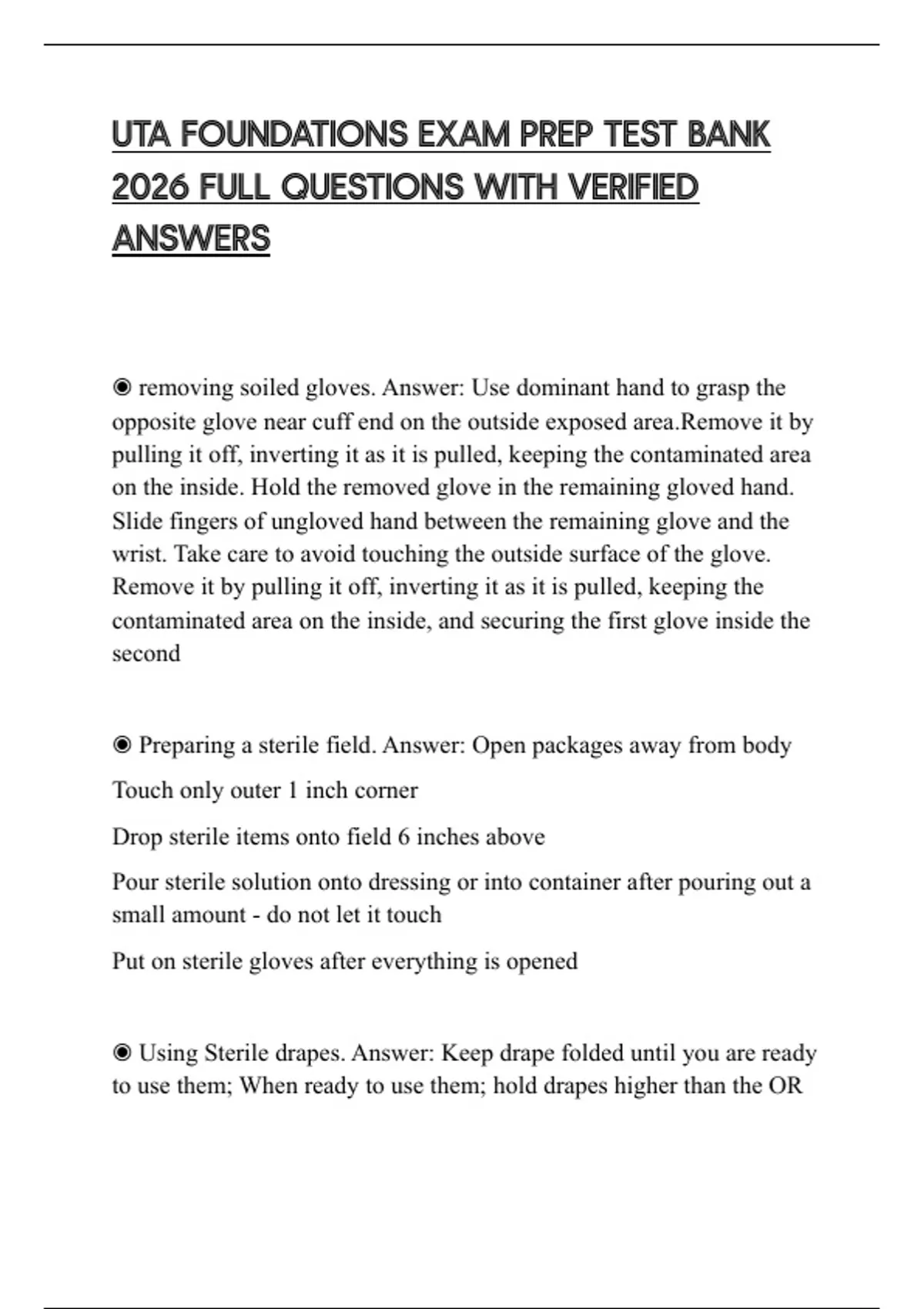 UTA FOUNDATIONS EXAM PREP TEST BANK 2026 FULL QUESTIONS WITH VERIFIED ANSWERS