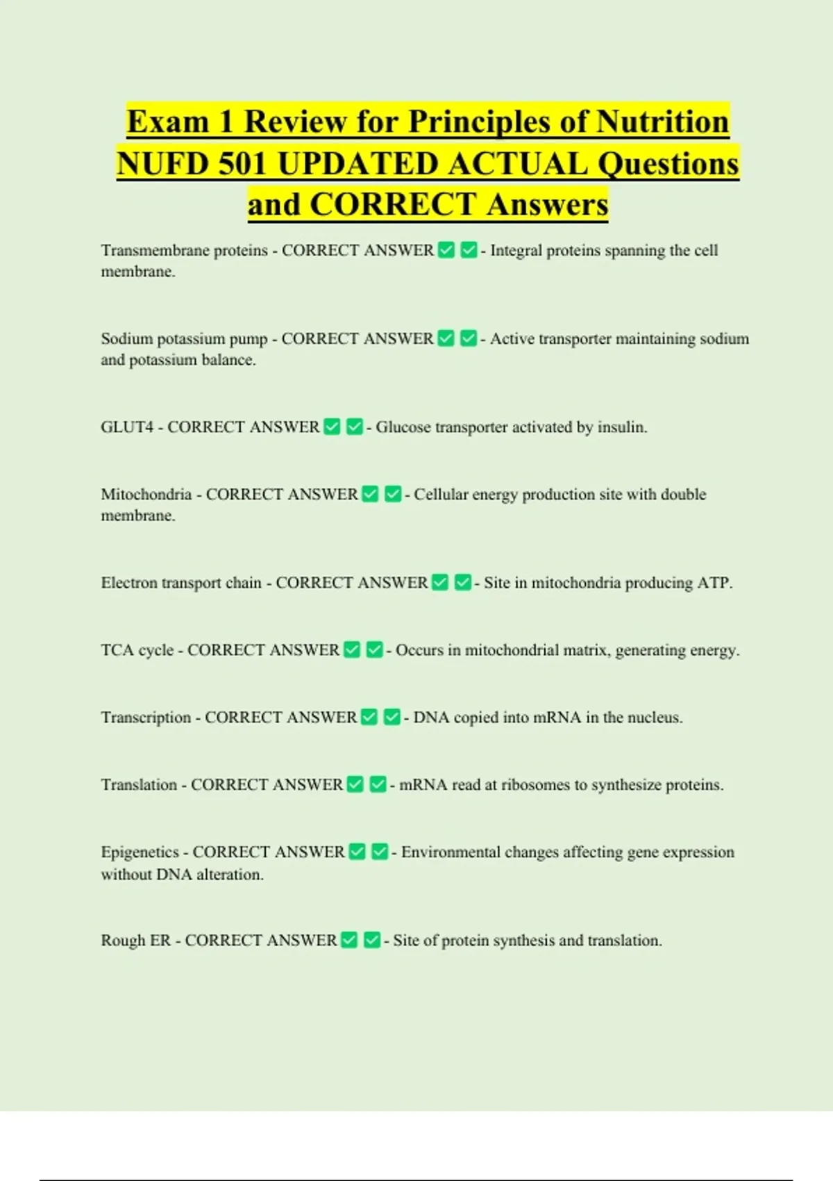 Exam 1 Review for Principles of Nutrition NUFD 501 UPDATED ACTUAL Questions and CORRECT Answers