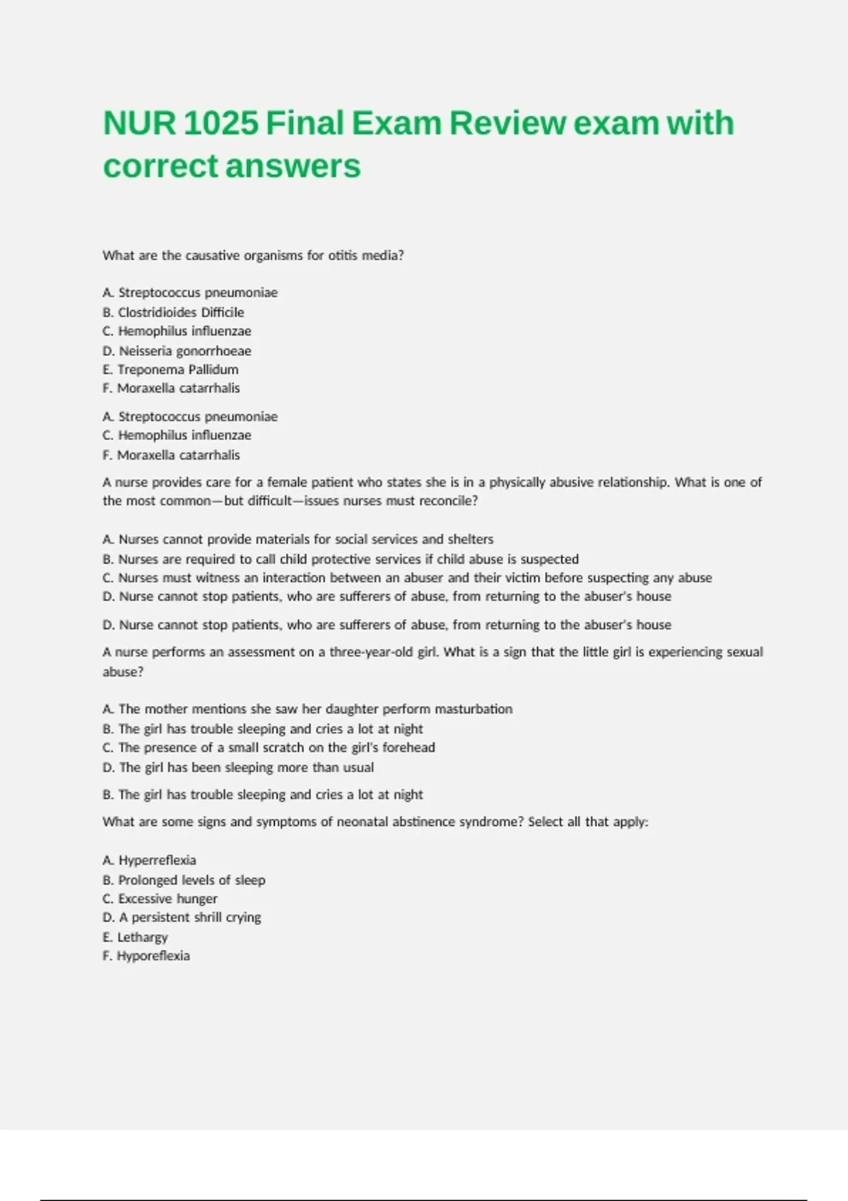 NUR 1025 Final Exam Review exam with correct answers
