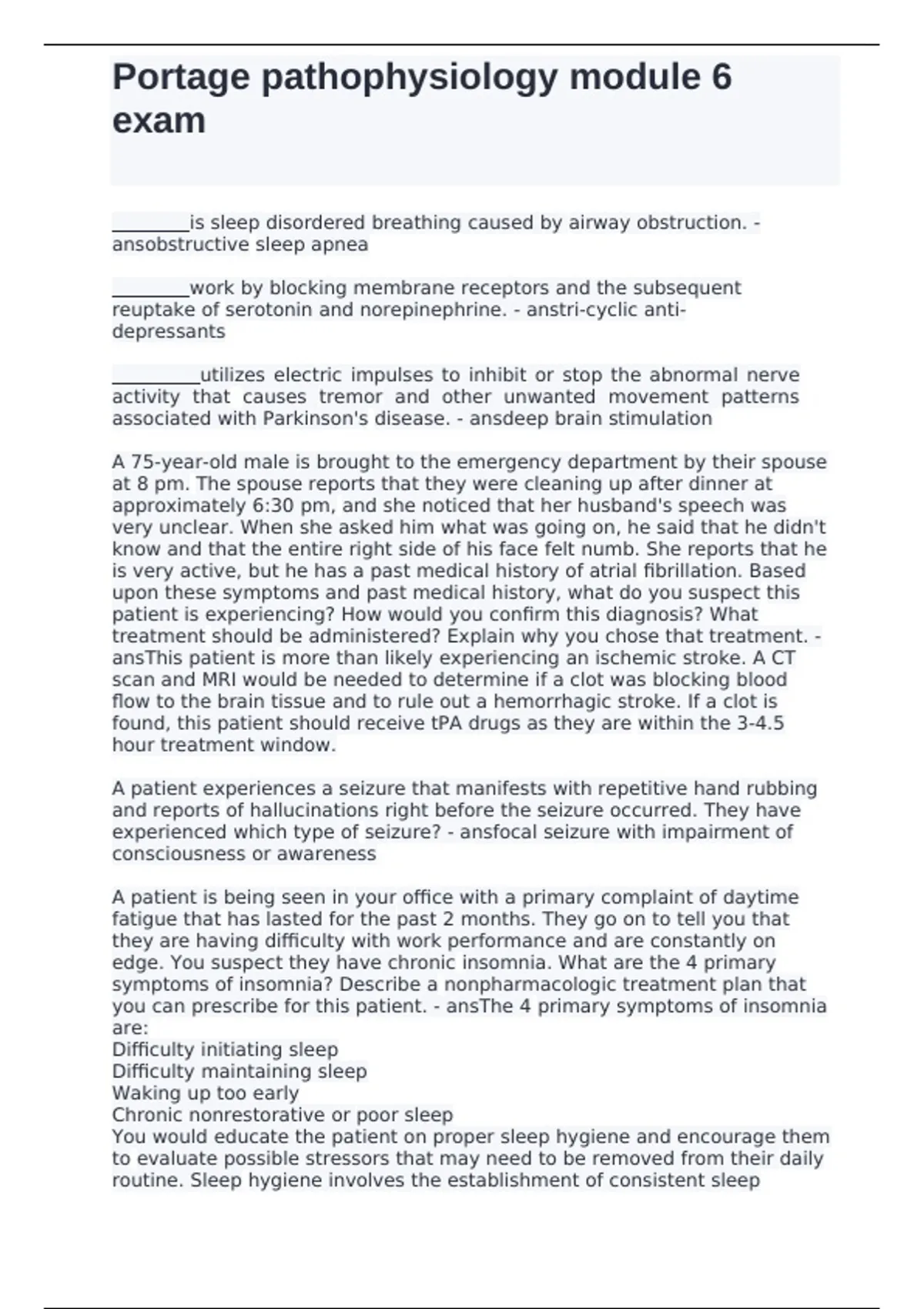 you can prescribe for this patient. - ansThe 4 primary symptoms of insomnia