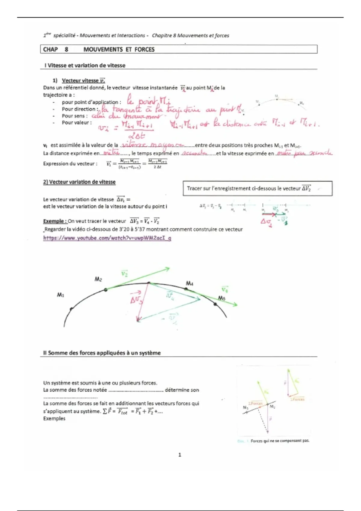 Résumé cours sur MOUVEMENTS ET FORCES (physique-chimie spécialité 1ère)
