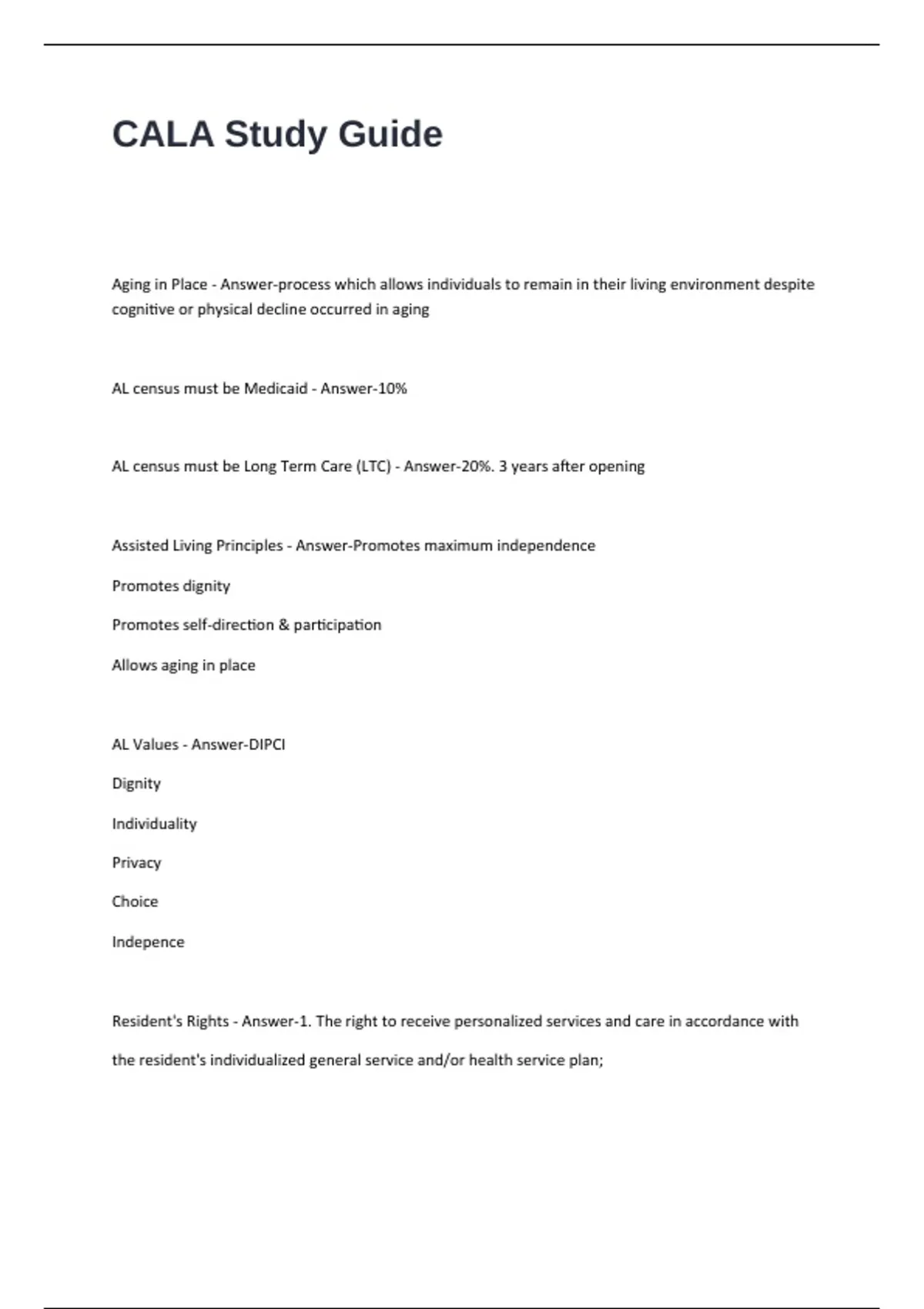 CALA EXAM STUDY GUIDE QUESTIONS AND ANSWERS