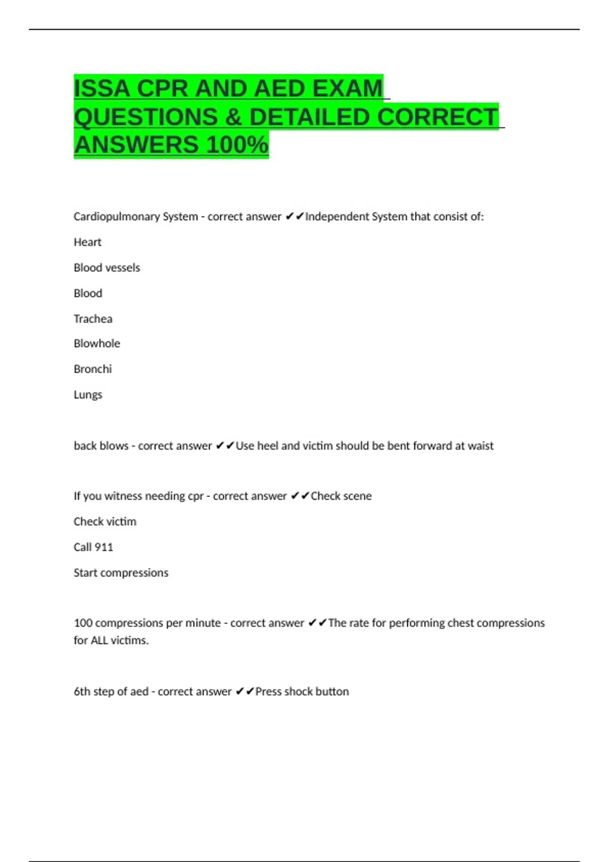 ISSA CPR AND AED EXAM QUESTIONS & DETAILED CORRECT ANSWERS 100%