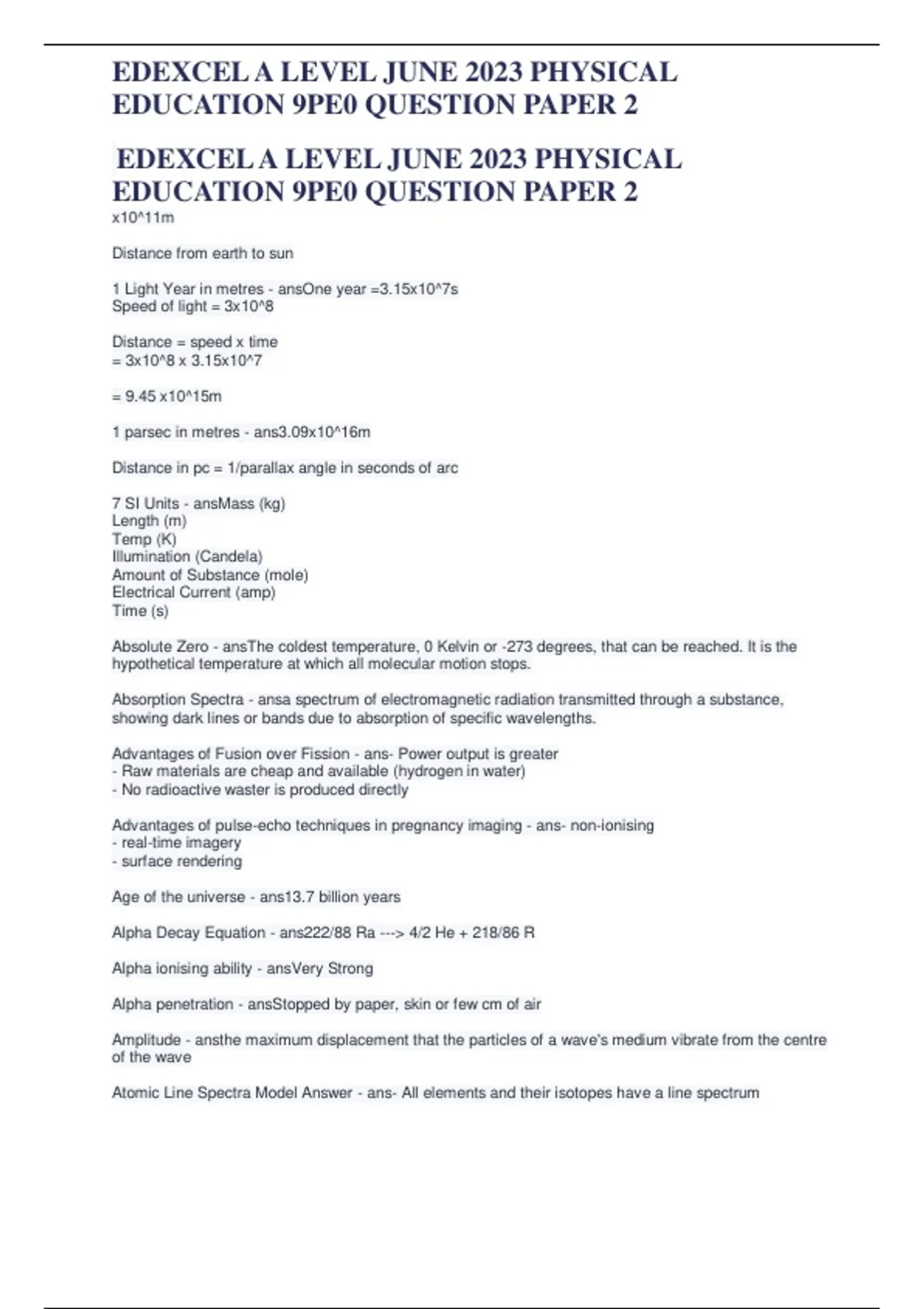 EDEXCEL A LEVEL JUNE 2023 PHYSICAL