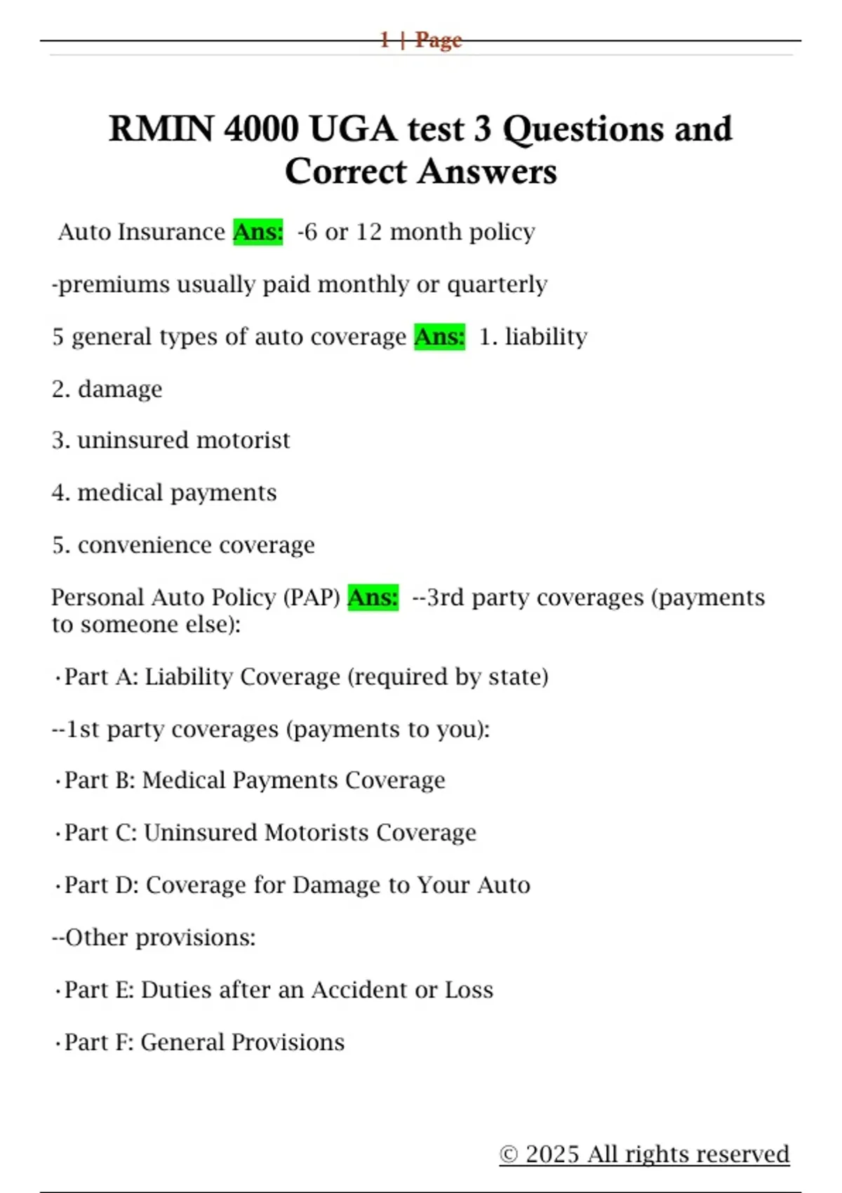 Personal Auto Policy (PAP) Ans: --3rd party coverages (payments