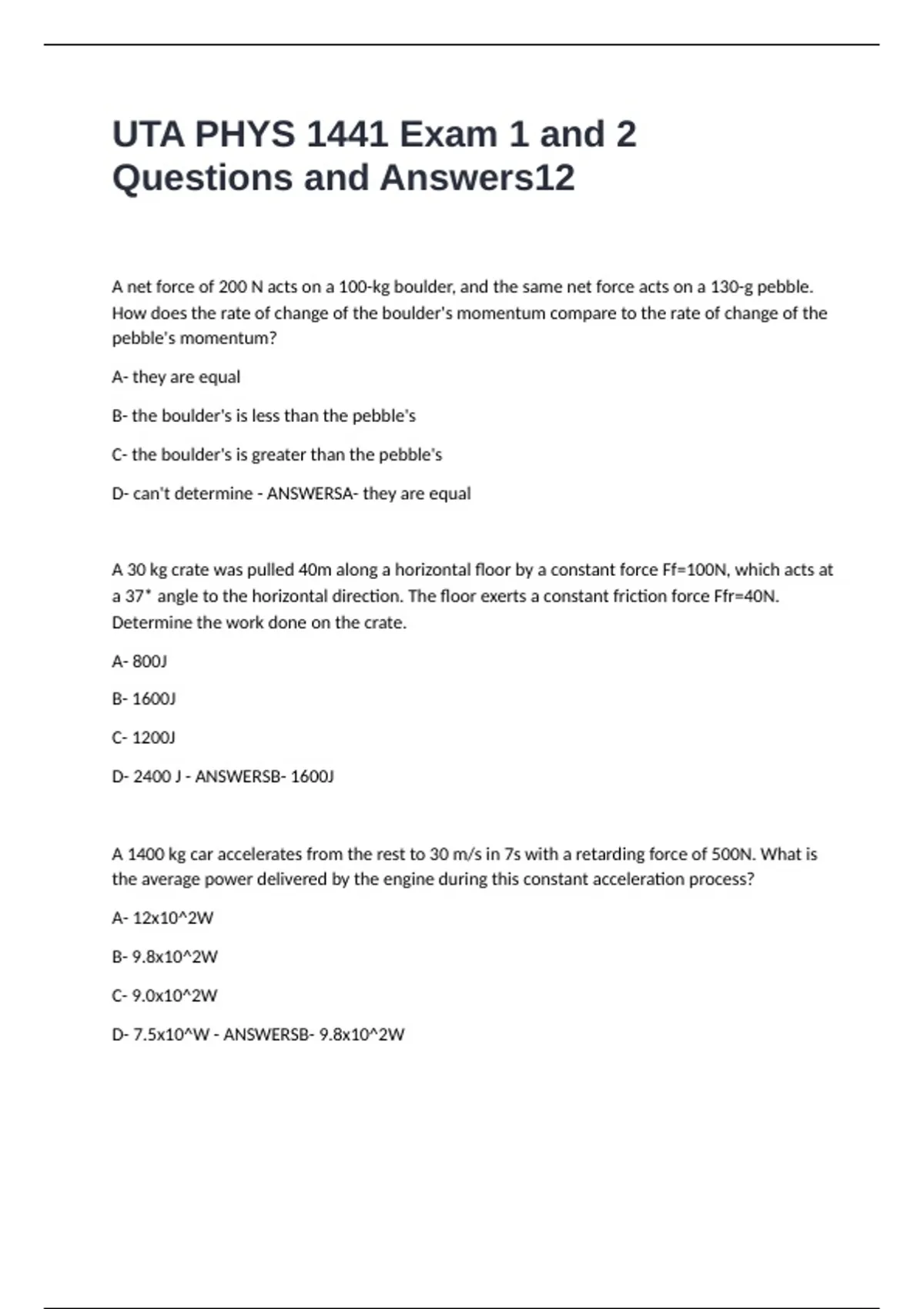 D- 2400 J - ANSWERSB- 1600J