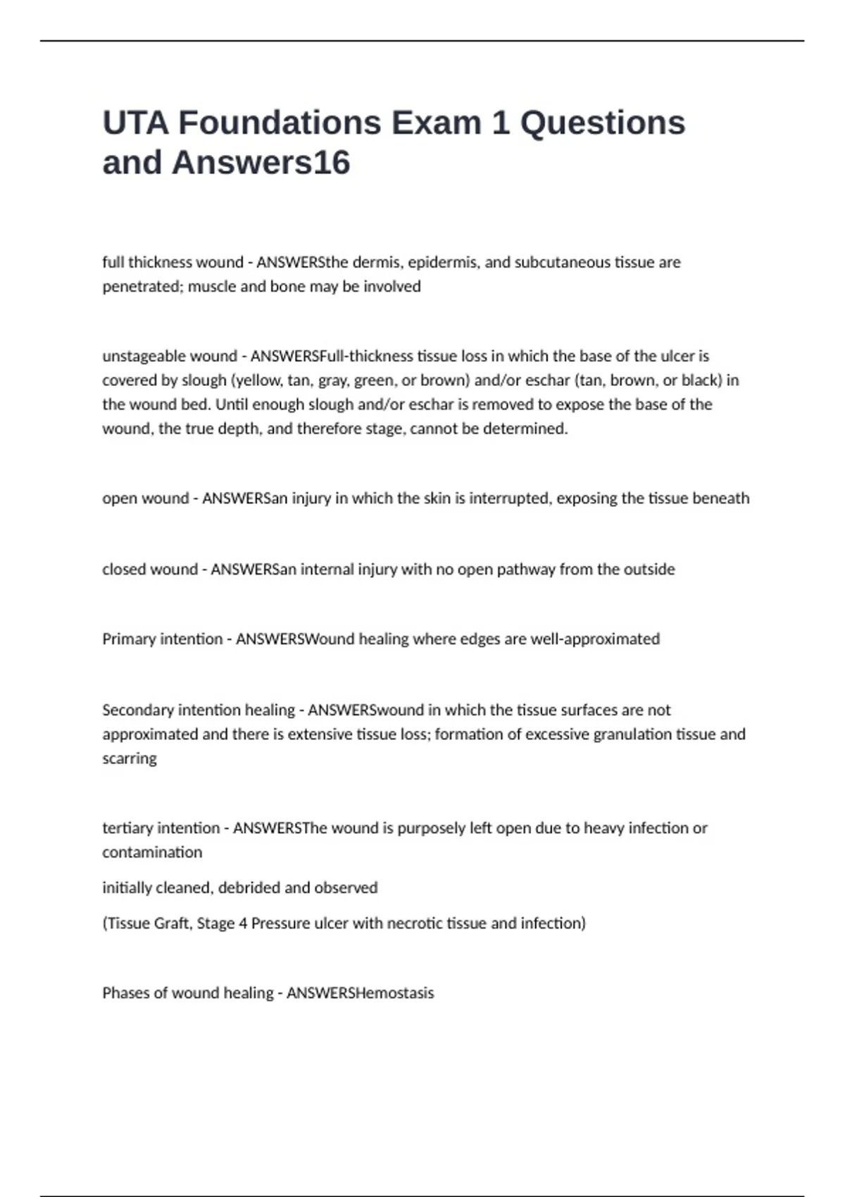 unstageable wound - ANSWERSFull-thickness tissue loss in which the base of the ulcer is