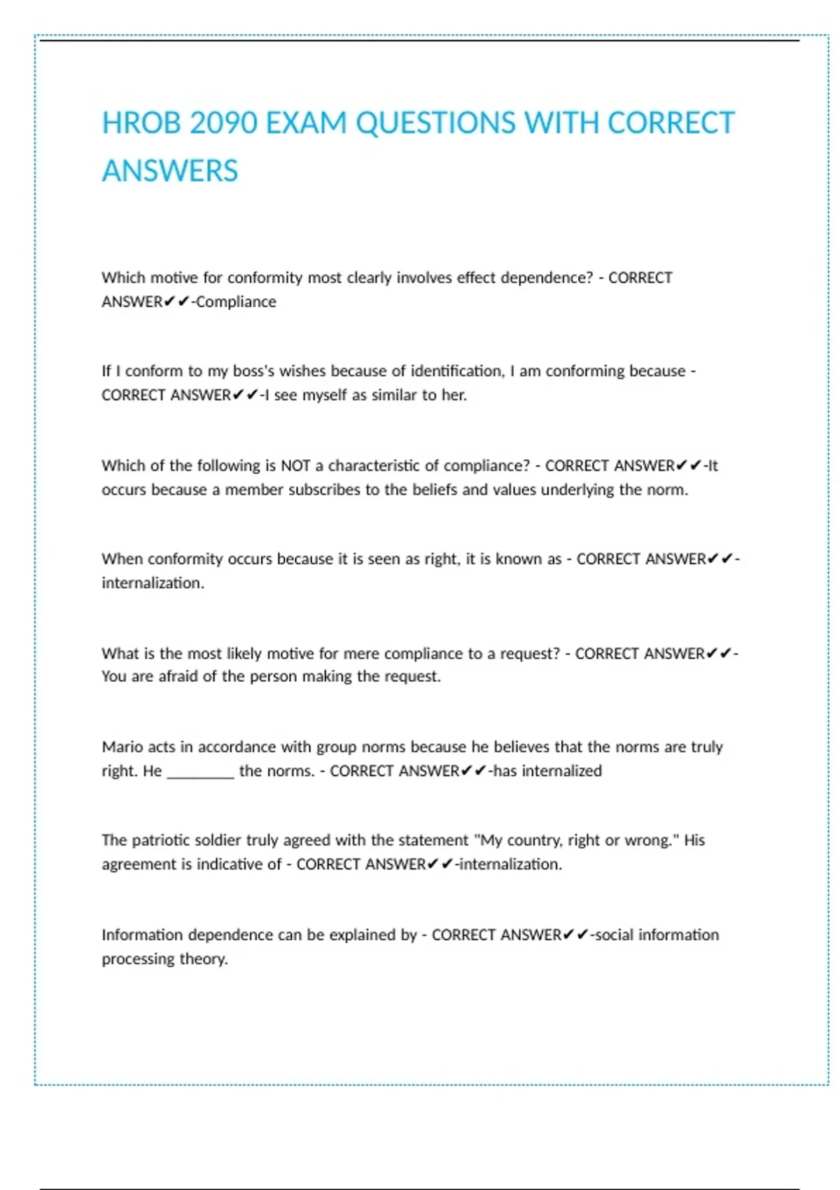 HROB 2090 EXAM QUESTIONS WITH CORRECT