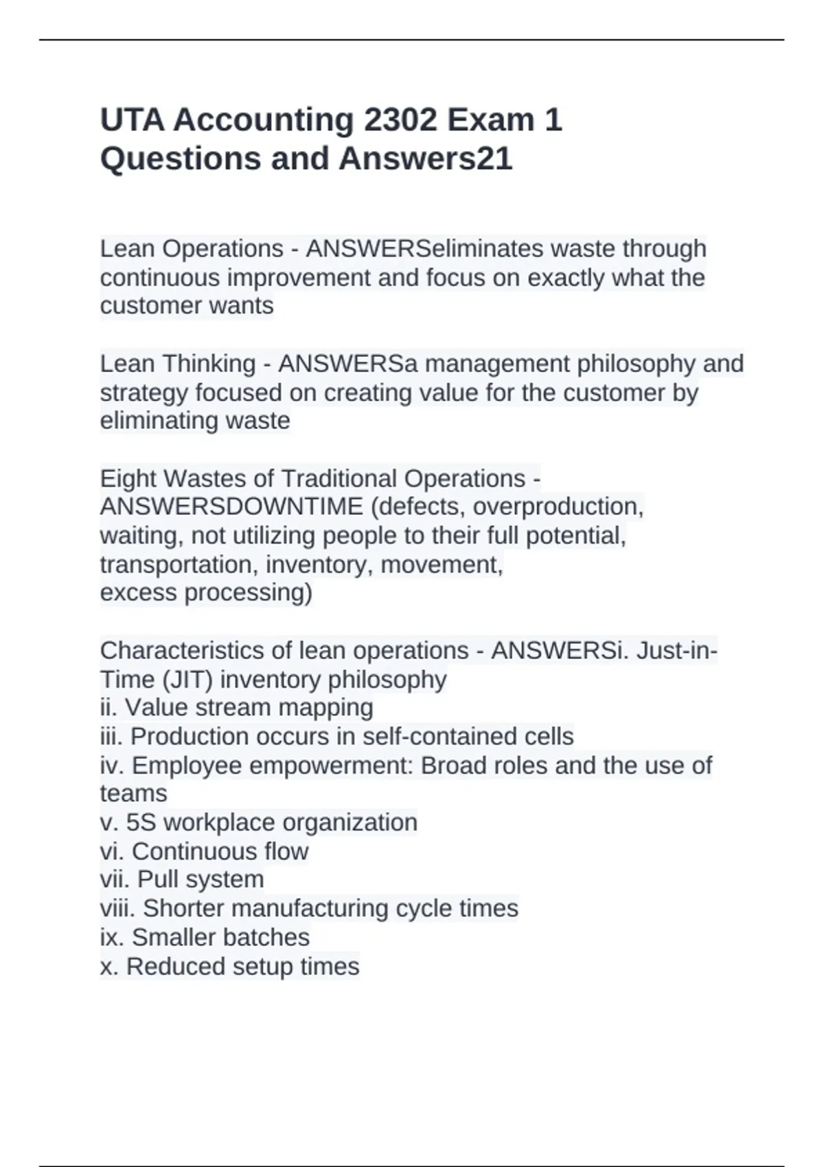 Characteristics of lean operations - ANSWERSi. Just-in-