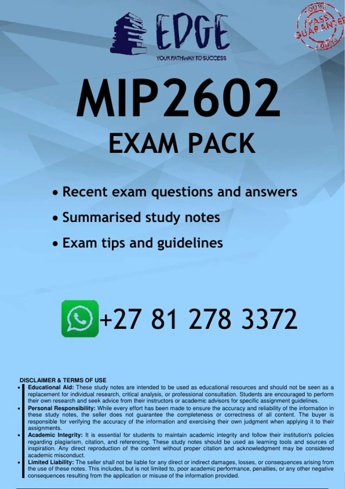 Well-structured MIP2602 EXAM PREPARATION PACK - DISTINCTION GUARANTEED. Contains recent exam questions and answers, and Summarised study notes. All you need to pass the 2026 EXAMS