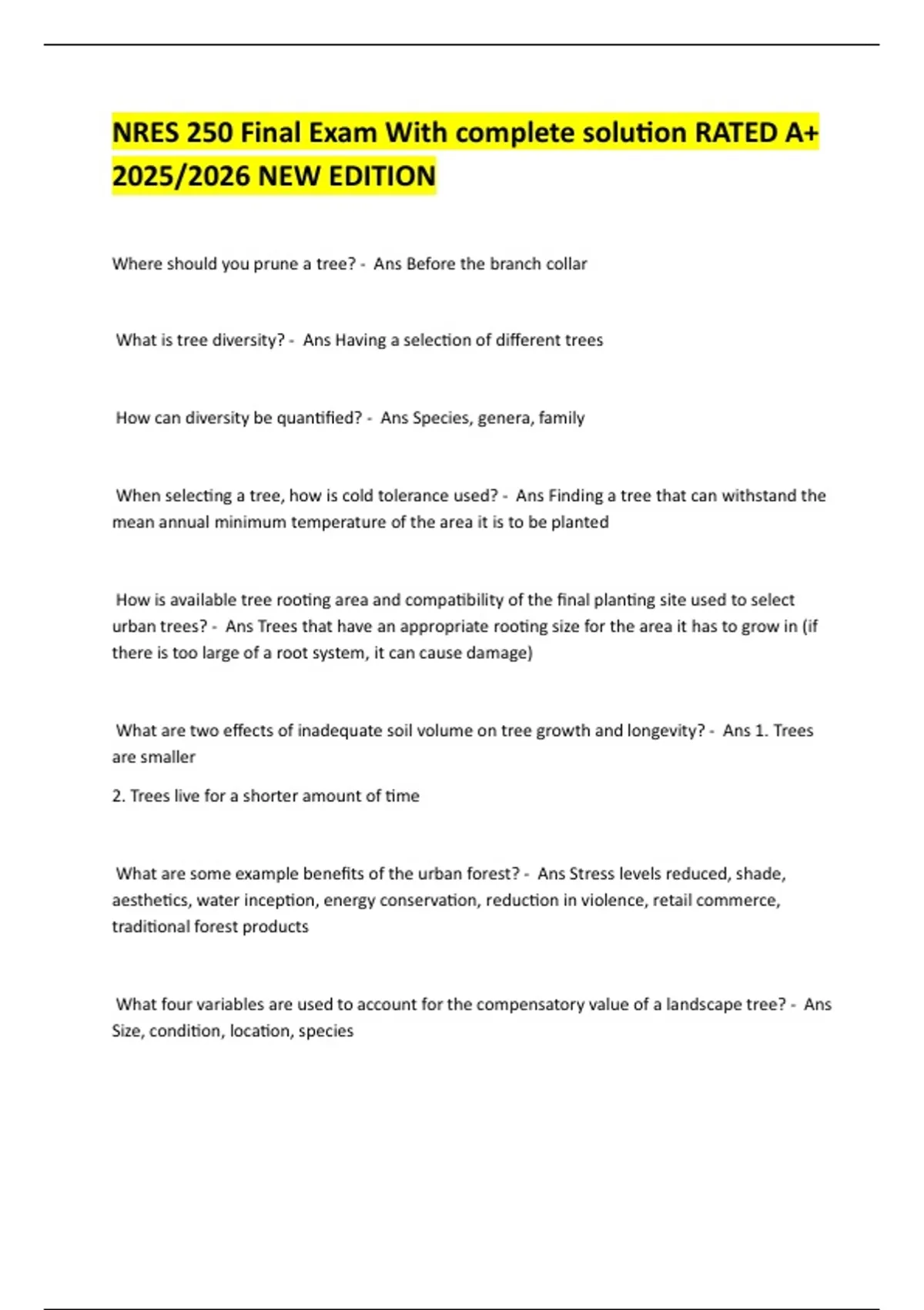 What is tree diversity? - Ans Having a selec on of different trees