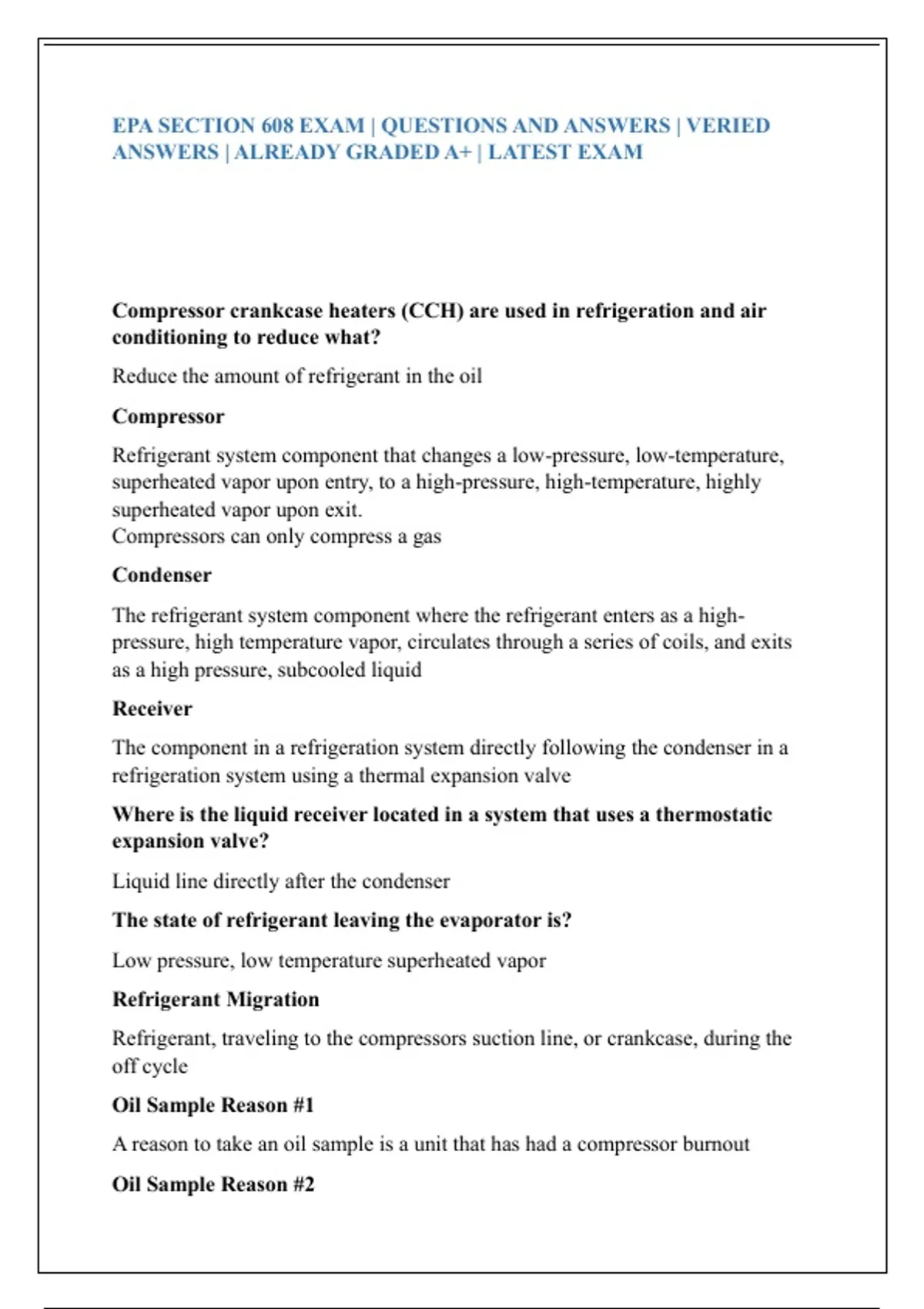EPA SECTION 608 EXAM | QUESTIONS AND ANSWERS | VERIED