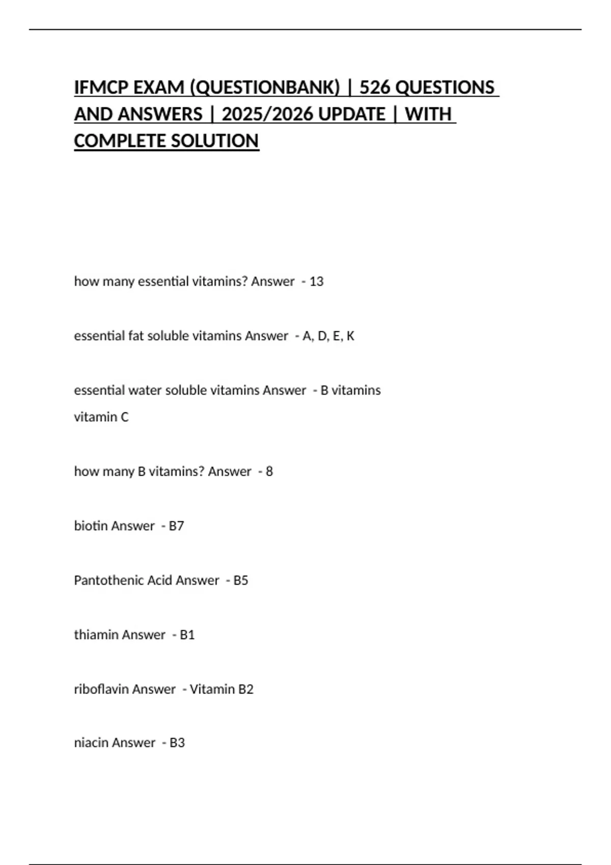 IFMCP EXAM (QUESTIONBANK) | 526 QUESTIONS AND ANSWERS | 2025/2026 UPDATE | WITH COMPLETE SOLUTION