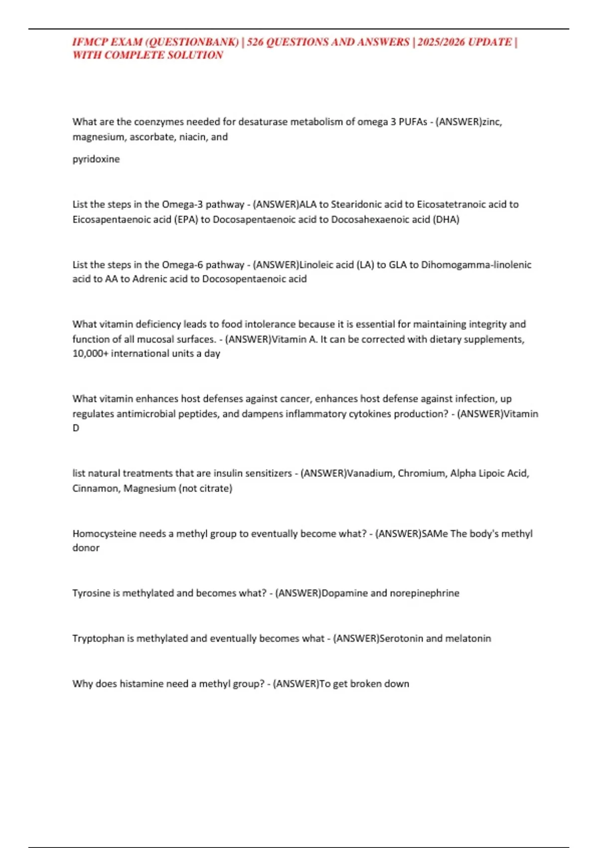 IFMCP EXAM (QUESTIONBANK) | 526 QUESTIONS AND ANSWERS | 2025/2026 UPDATE |
