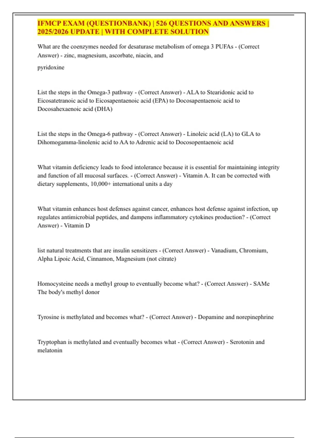 IFMCP EXAM (QUESTIONBANK) | 526 QUESTIONS AND ANSWERS | 2025/2026 UPDATE | WITH COMPLETE SOLUTION