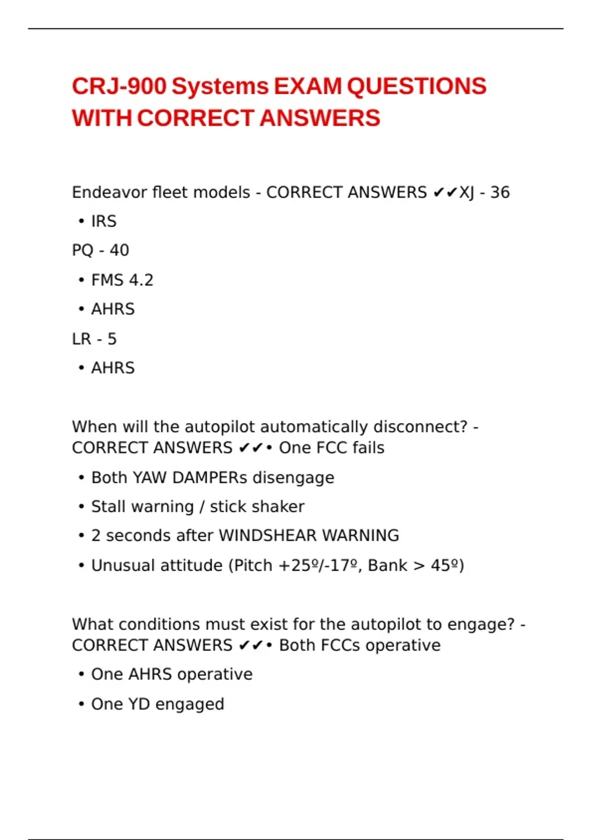 CORRECT ANSWERS ✔✔The CRJ-900 does not have AC |\ |\ |\ |\ |\ |\ |\ |\