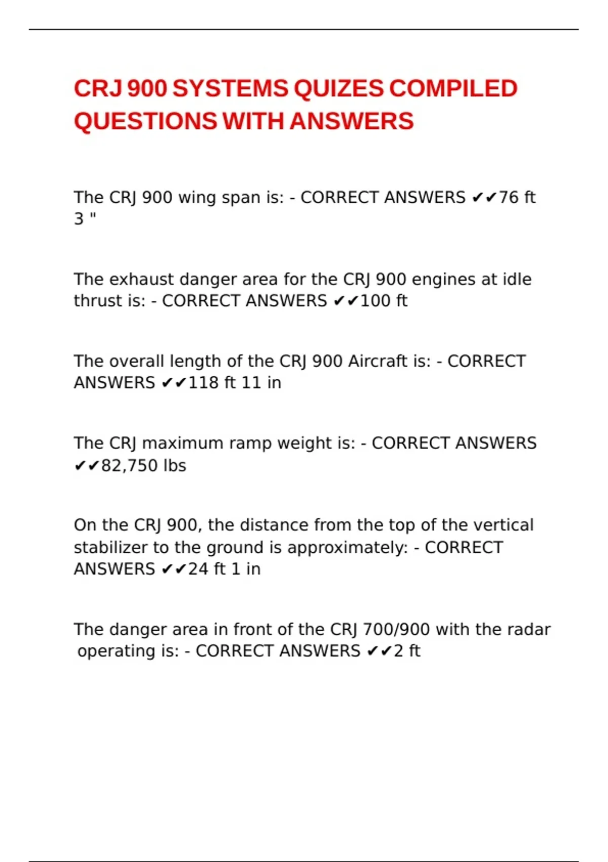 The CRJ 900 wing span is: - CORRECT ANSWERS ✔✔76 ft