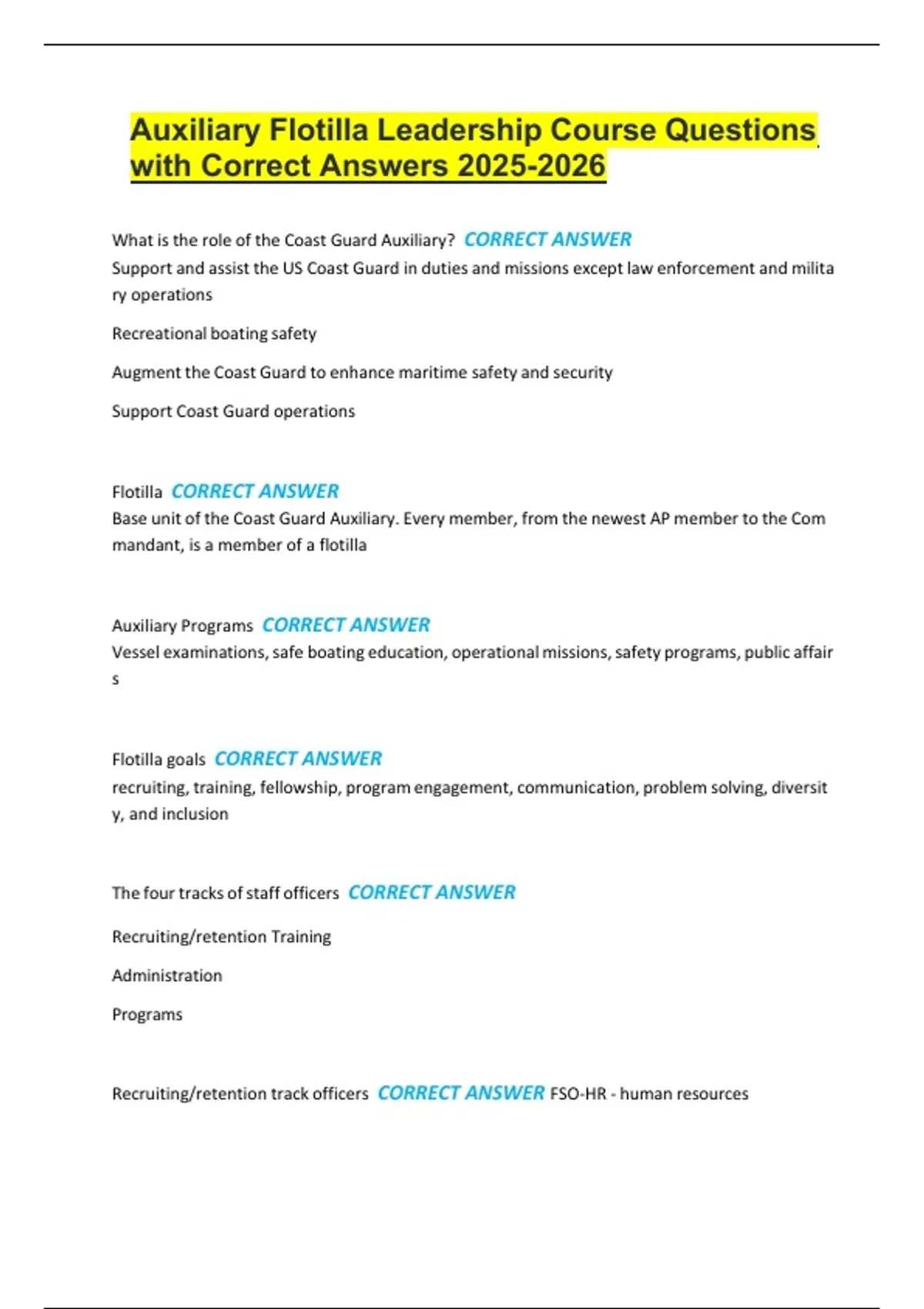 Responsibilities of the flotilla commander (FC) CORRECT ANSWER