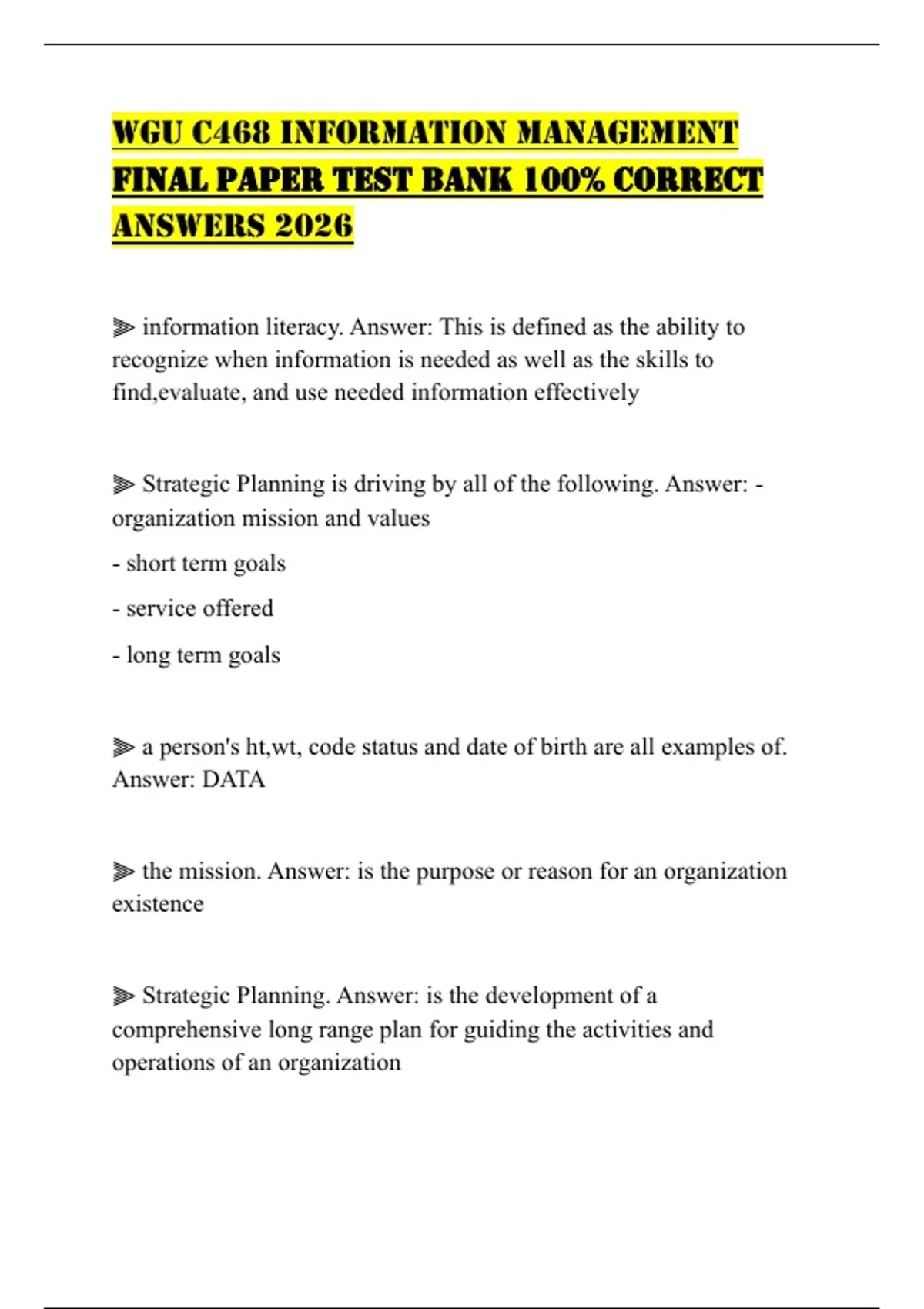 WGU C468 INFORMATION MANAGEMENT FINAL PAPER TEST BANK 100% CORRECT ANSWERS 2026