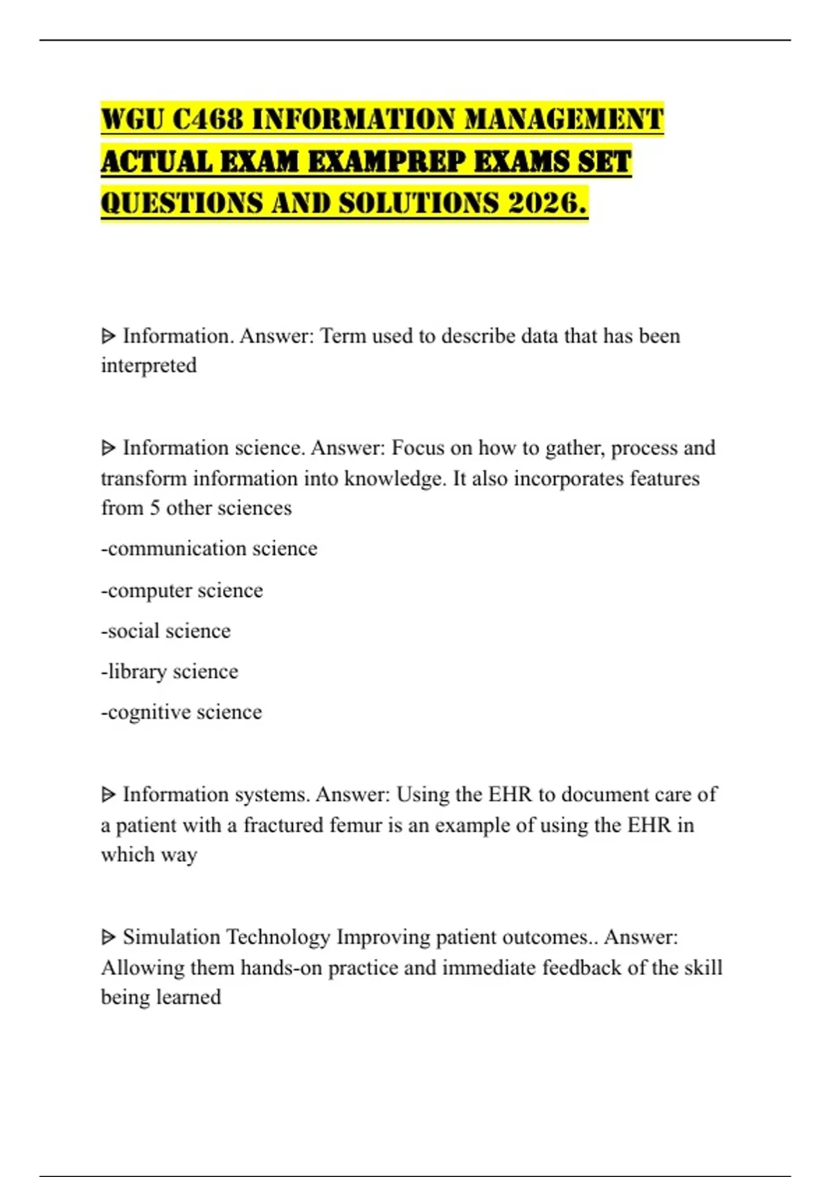 WGU C468 INFORMATION MANAGEMENT ACTUAL EXAM EXAMPREP EXAMS SET QUESTIONS AND SOLUTIONS 2026